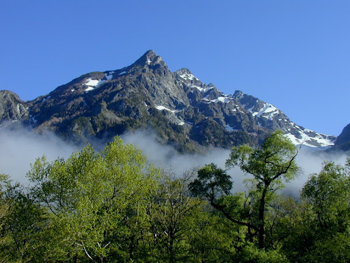 長野県北アルプスにある、穂高連峰の一つ。その険しい岩稜は、上級者向けの登山ルートとして知られています。上高地からその雄大な姿を望むことができます。