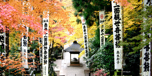 岐阜県揖斐川町にある、西国三十三所観音霊場の満願寺。桜や紅葉の季節には、境内が美しく彩られます。多くの参拝客が訪れる古刹です。
