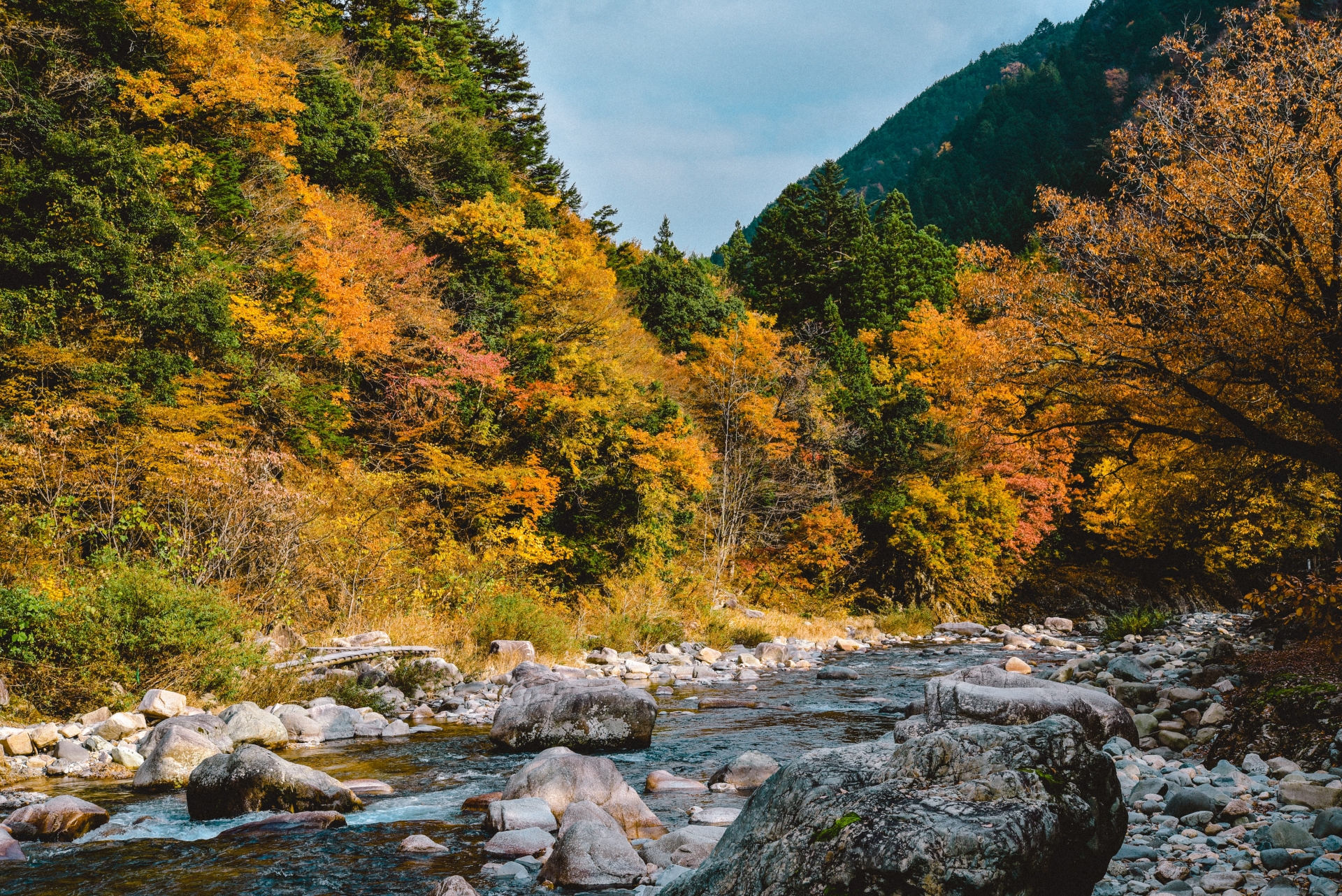 岐阜県関市にある渓谷。エメラルドグリーンの清流と、奇岩・巨岩が織りなす景観が魅力。遊歩道が整備され、清流と森林浴を楽しめます。