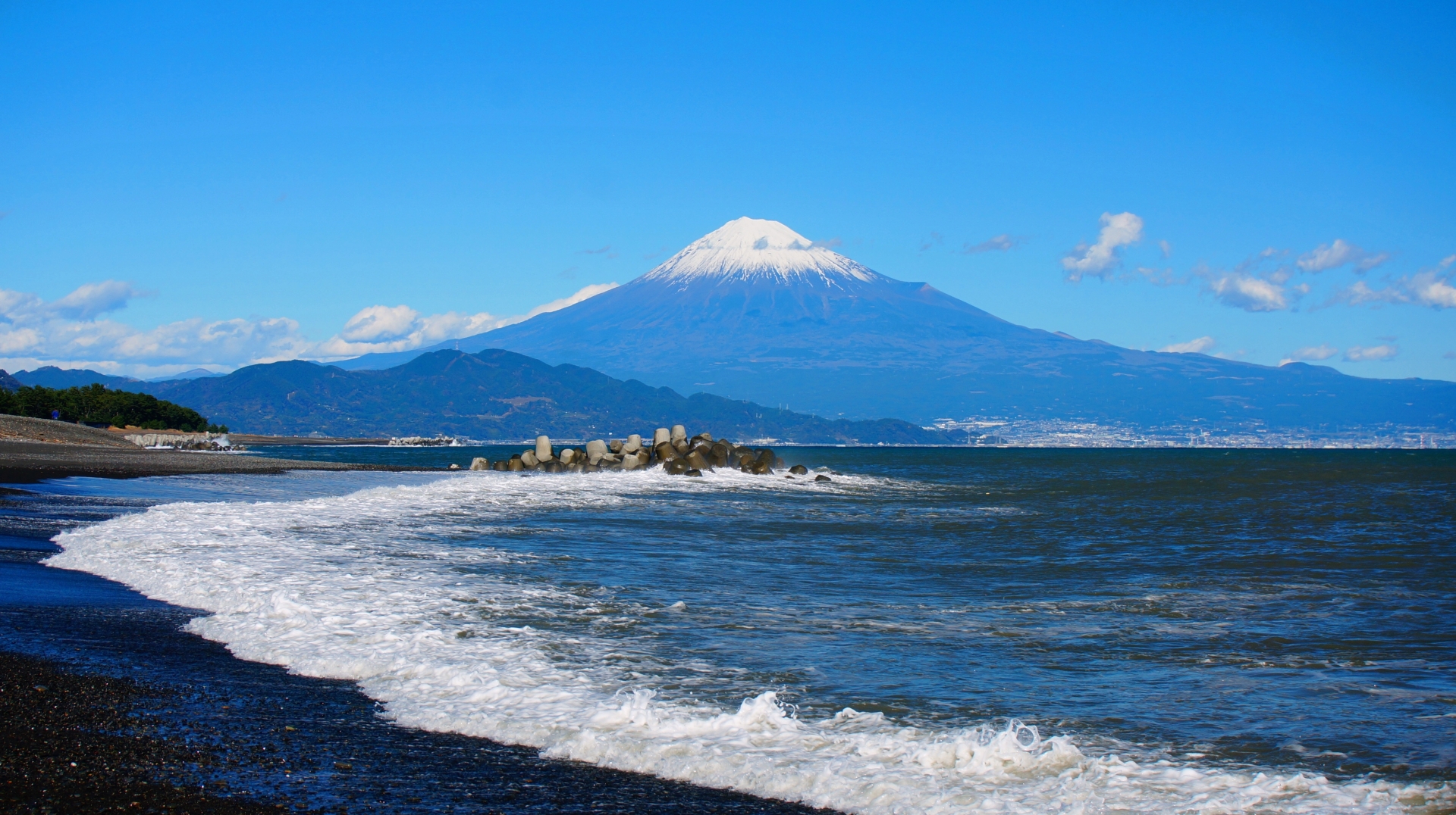 静岡県静岡市にある、富士山を背景に松林と海岸線が広がる景勝地。世界遺産の構成資産の一つで、羽衣の松の伝説も伝わります。