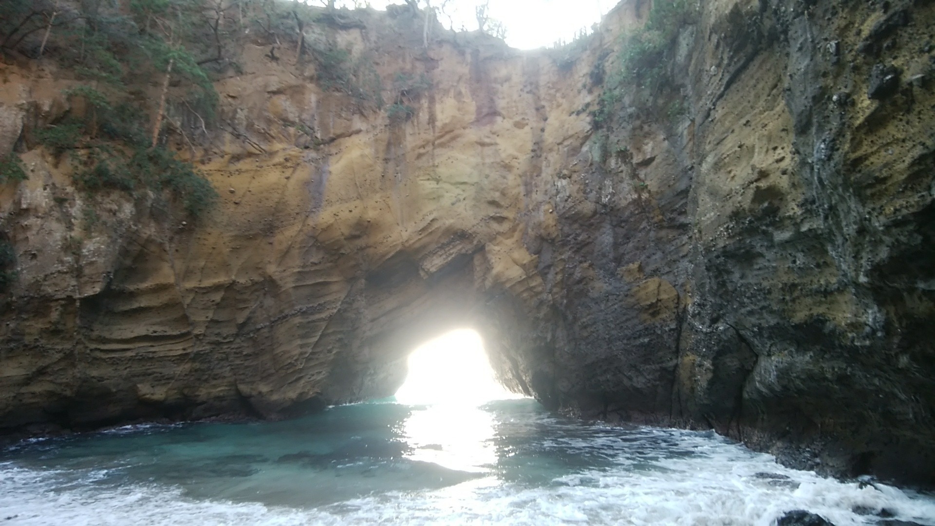 - 静岡県下田市にある、波の浸食によってできた海食洞。上部が崩落して大きな天窓が開いた珍しい地形が特徴で、上から見るとハート型に見えることから、「縁結びのパワースポット」としても人気です。洞窟内部の神秘的な光と影のコントラストは、幻想的な写真を撮るのに最適。特に、天窓から差し込む光の筋は、まるで神様が降りてくるような神聖な雰囲気を醸し出します。