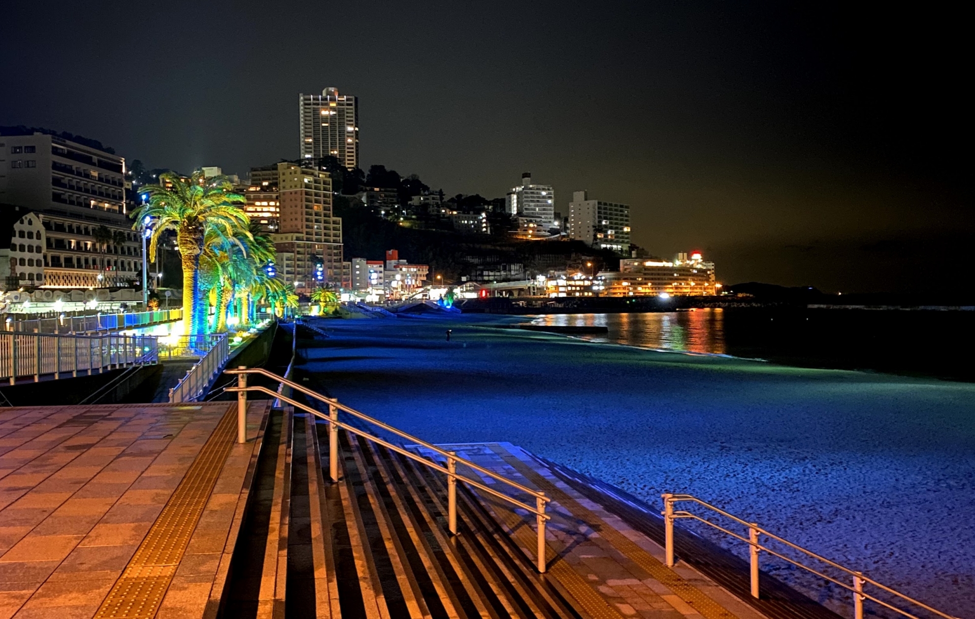- 静岡県熱海市の中心部にある、整備された人工ビーチ。ヤシの木が植えられ、リゾート感あふれる雰囲気です。夏は海水浴客で賑わい、その活気を写真に収めることができます。夜にはビーチがライトアップされ、幻想的なムーンライトビーチに変身。ロマンチックな夜景を背景に、ムードある写真が撮れます。熱海温泉街からアクセスが良く、気軽に立ち寄れるのも魅力です。