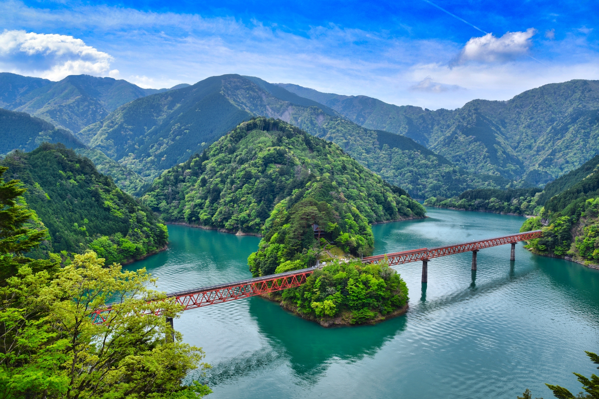 - 静岡県川根本町の接岨湖に突き出た半島のような場所に位置する、大井川鐵道の秘境駅。湖上にかかるレインボーブリッジの上にある駅で、まるで湖に浮かんでいるかのような幻想的な景観が魅力です。駅からの景色は雄大で、特に紅葉の季節は格別。ハイキングコースとしても人気で、橋の上から駅舎を眺める構図が定番のフォトスポットです。非日常的な風景を写真に収めたい人におすすめです。