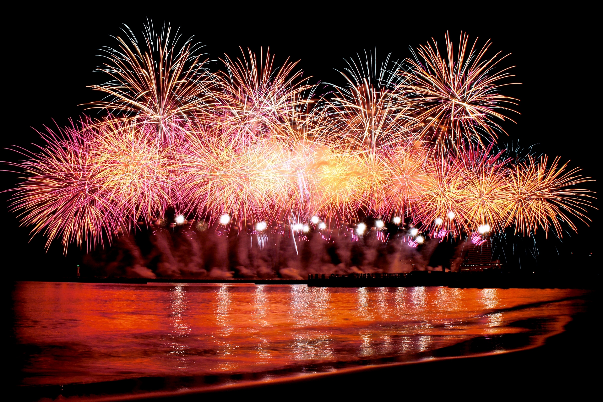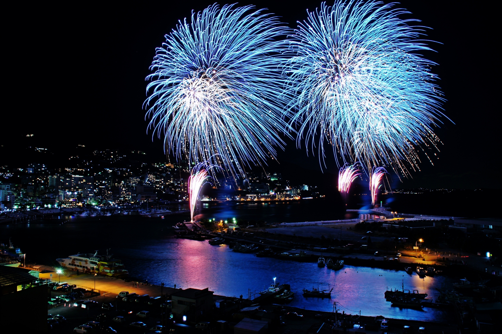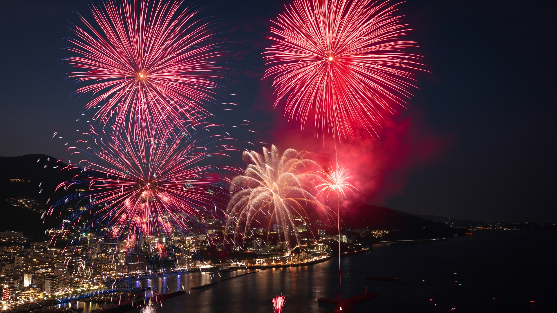 - 静岡県熱海市で年に十数回開催される花火大会。海上の台船から打ち上げられる花火は、熱海の三方を山に囲まれた地形により、大きな音と光が反響し、スタジアムのような迫力満点の臨場感を味わえます。特にフィナーレの「空中ナイアガラ」は圧巻。夜空と海を彩る色鮮やかな花火の写真を収めることができます。打ち上げ場所が近いので、迫力ある写真が撮れます。