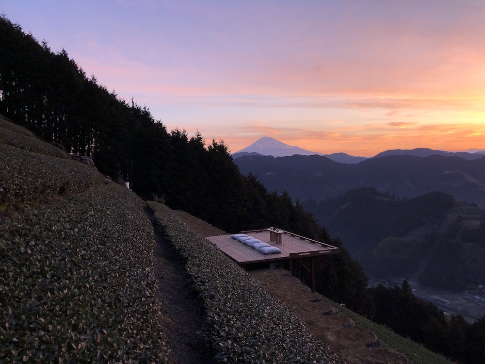 - 静岡県静岡市にある、茶畑の中に設けられた展望スペース。周囲を茶畑に囲まれ、富士山と静岡市街、駿河湾を一望できる絶景スポットです。茶畑の緑と、青い空、そして雄大な景色を独り占めできるような開放感が魅力。事前に予約が必要ですが、誰にも邪魔されないプライベートな空間で、特別な写真が撮れます。日本の茶文化と自然美を感じられる場所です。