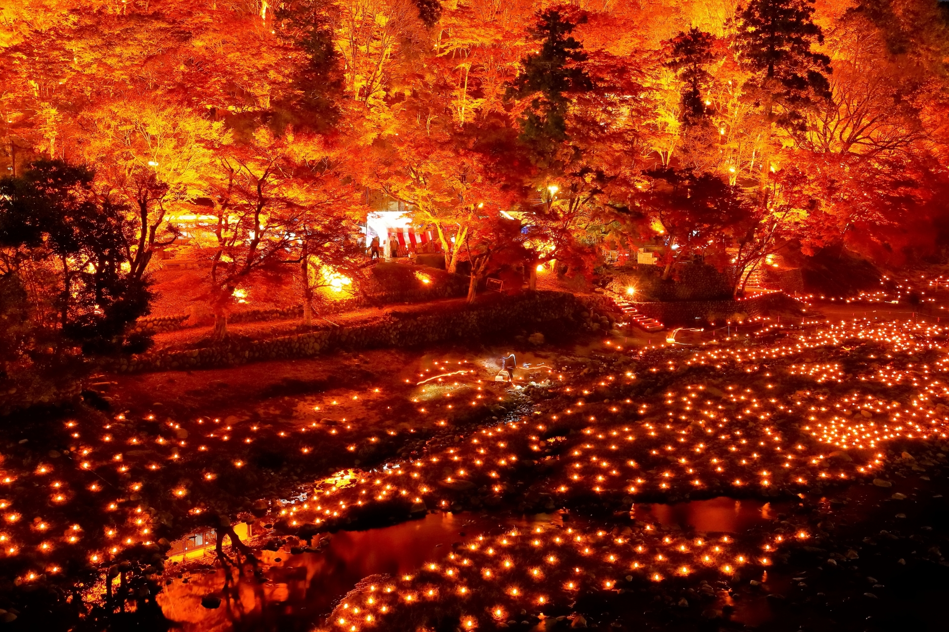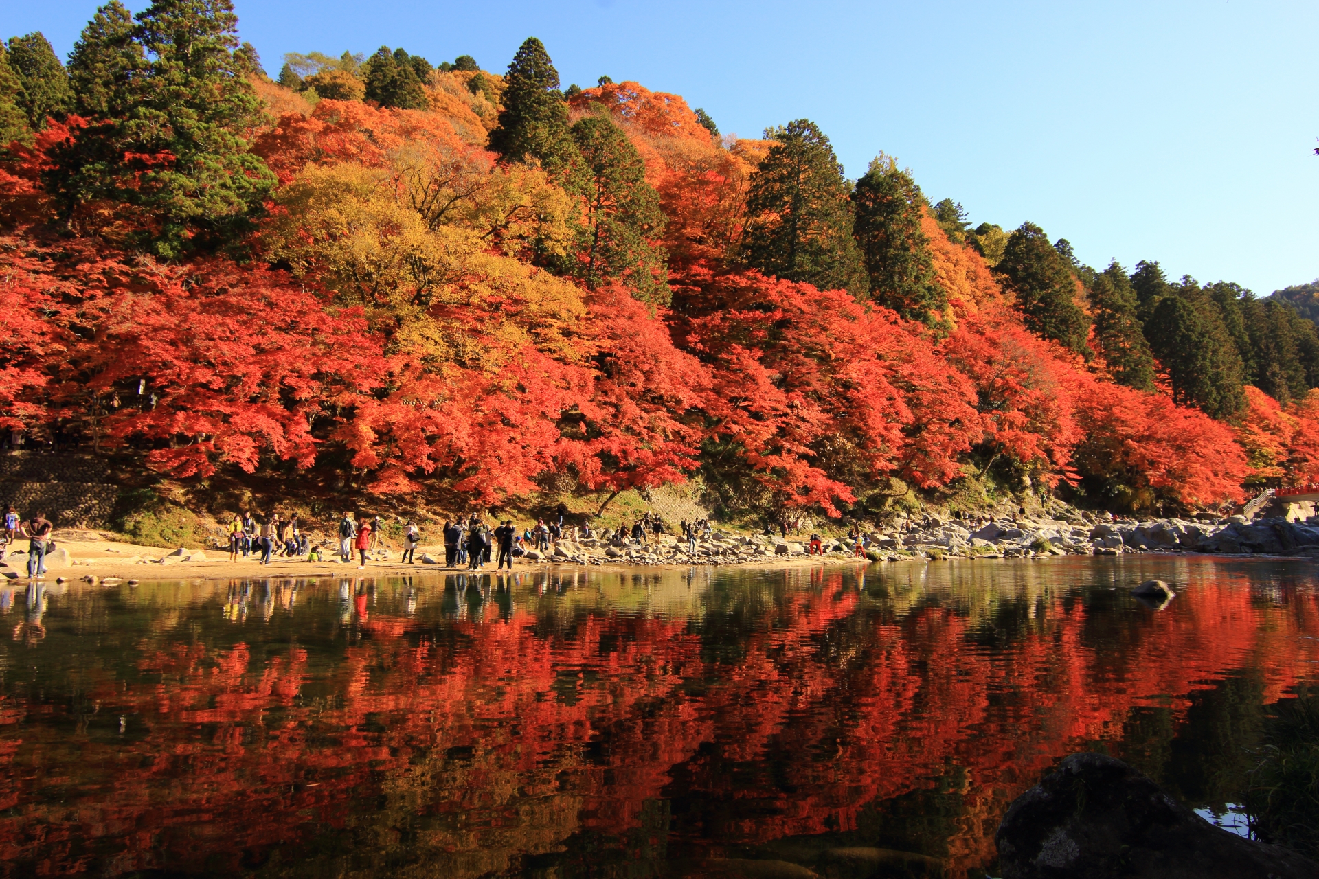 基本情報名称香嵐渓概要愛知県豊田市にある、紅葉の名所として全国的に有名な渓谷。巴川沿いに約4000本のモミジが植えられており、秋には辺り一面が赤や黄色に染まります。特に、待月橋周辺からの眺めは絶景で、川面に映る紅葉も美しい。夜にはライトアップが行われ、幻想的な夜の紅葉を楽しめます。日本の秋の美しさを代表する、感動的なフォトスポットです。住所〒444-2424 愛知県豊田市足助町飯盛電話–営業時間–アクセス–HPhttp://asuke.info/