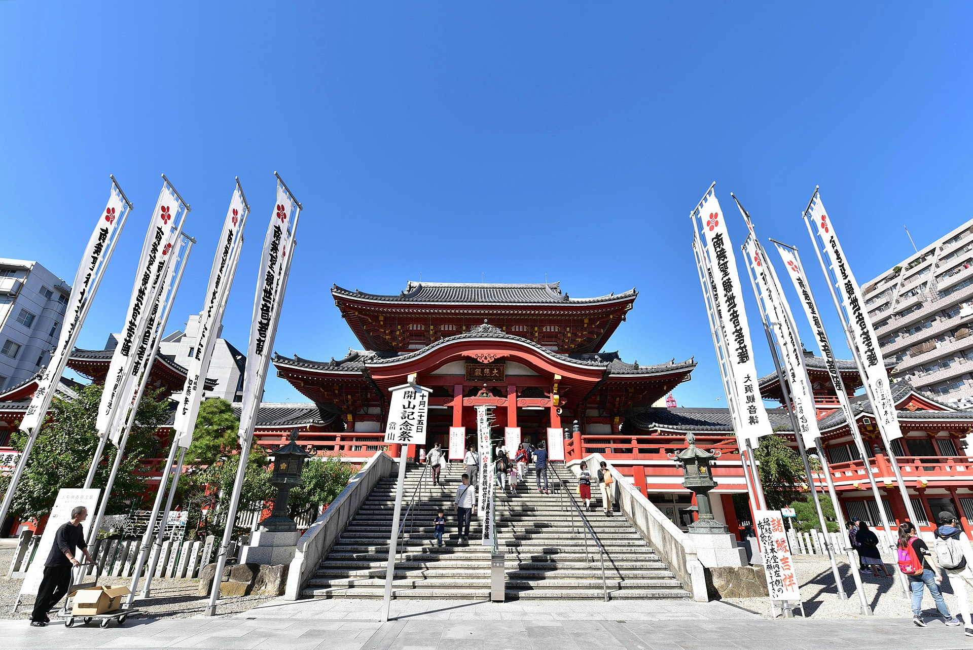 愛知県名古屋市にある、真言宗の古刹。正式名称は「真福寺」で、日本三大観音の一つに数えられています。門前には、若者の街として知られる大須商店街が広がり、賑わいを見せています。朱色の本堂や、境内の鳩の群れなどがフォトジェニック。街の活気と、寺の厳かな雰囲気が混在するユニークな場所です。