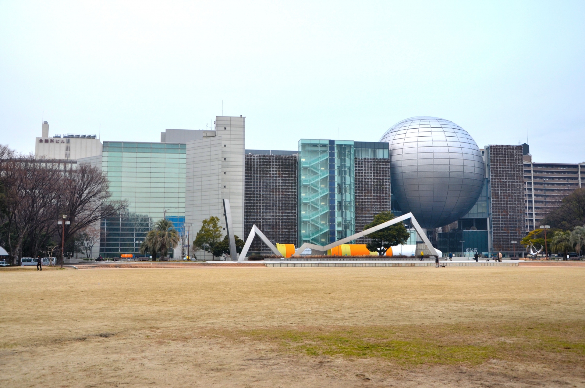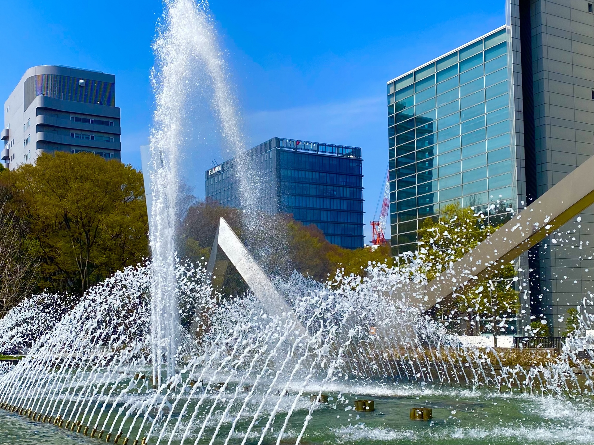 愛知県名古屋市にある、名古屋市科学館と名古屋市美術館に挟まれた公園。都会の真ん中にありながら、豊かな緑と、噴水があり、憩いの場となっています。モダンな建物と緑のコントラストが美しい。