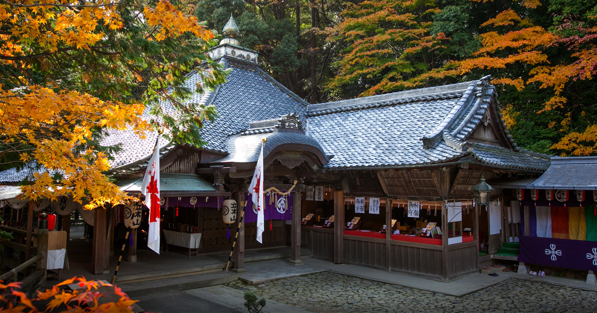 滋賀県大津市にある、弘法大師が開いたとされる寺院。急な石段を登ると、琵琶湖の景色が広がる。