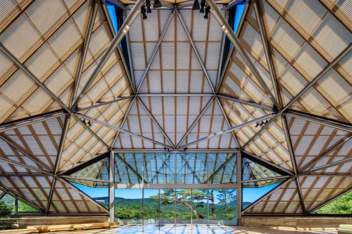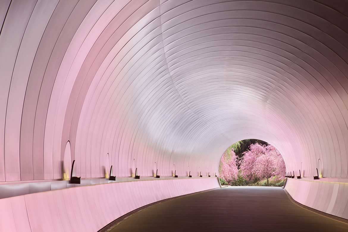 滋賀県甲賀市にある、美術館。I.M.ペイが設計した建物は、トンネルと吊り橋を渡って到着する、幻想的な空間。