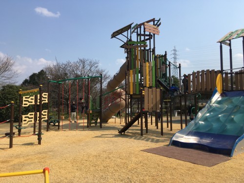 滋賀県草津市にある、広い芝生広場と、遊具がある公園。家族連れに人気の場所。