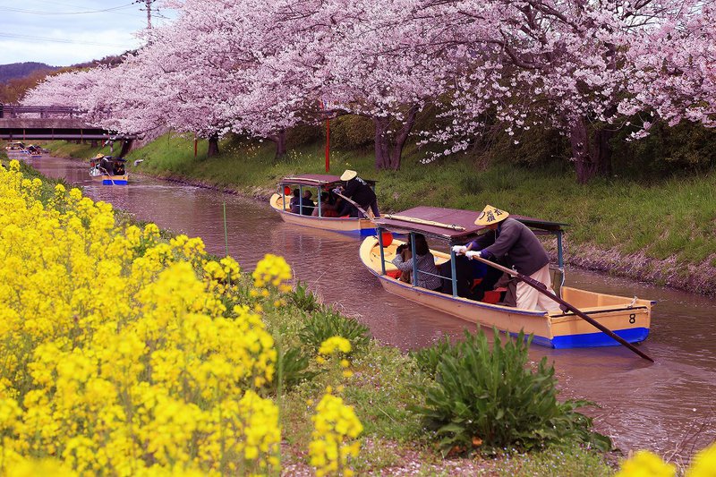 滋賀県近江八幡市にある、水路を船で巡る観光。水郷ののどかな風景が美しい。