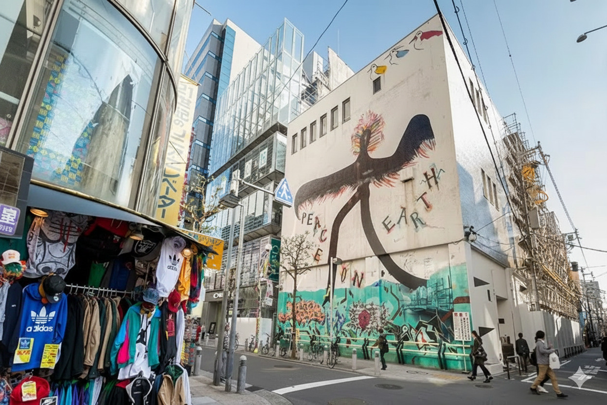 - 大阪市中央区にある、若者文化の発信地として知られるエリア。個性的なファッションビルやストリートアート、そしてカラフルな看板がひしめき合い、エネルギッシュな雰囲気が漂います。アメ村のシンボルである「三角公園」周辺は、ストリートファッションを捉えたスナップショットに最適。若者の活気と、独自の文化を感じさせる写真が撮れます。