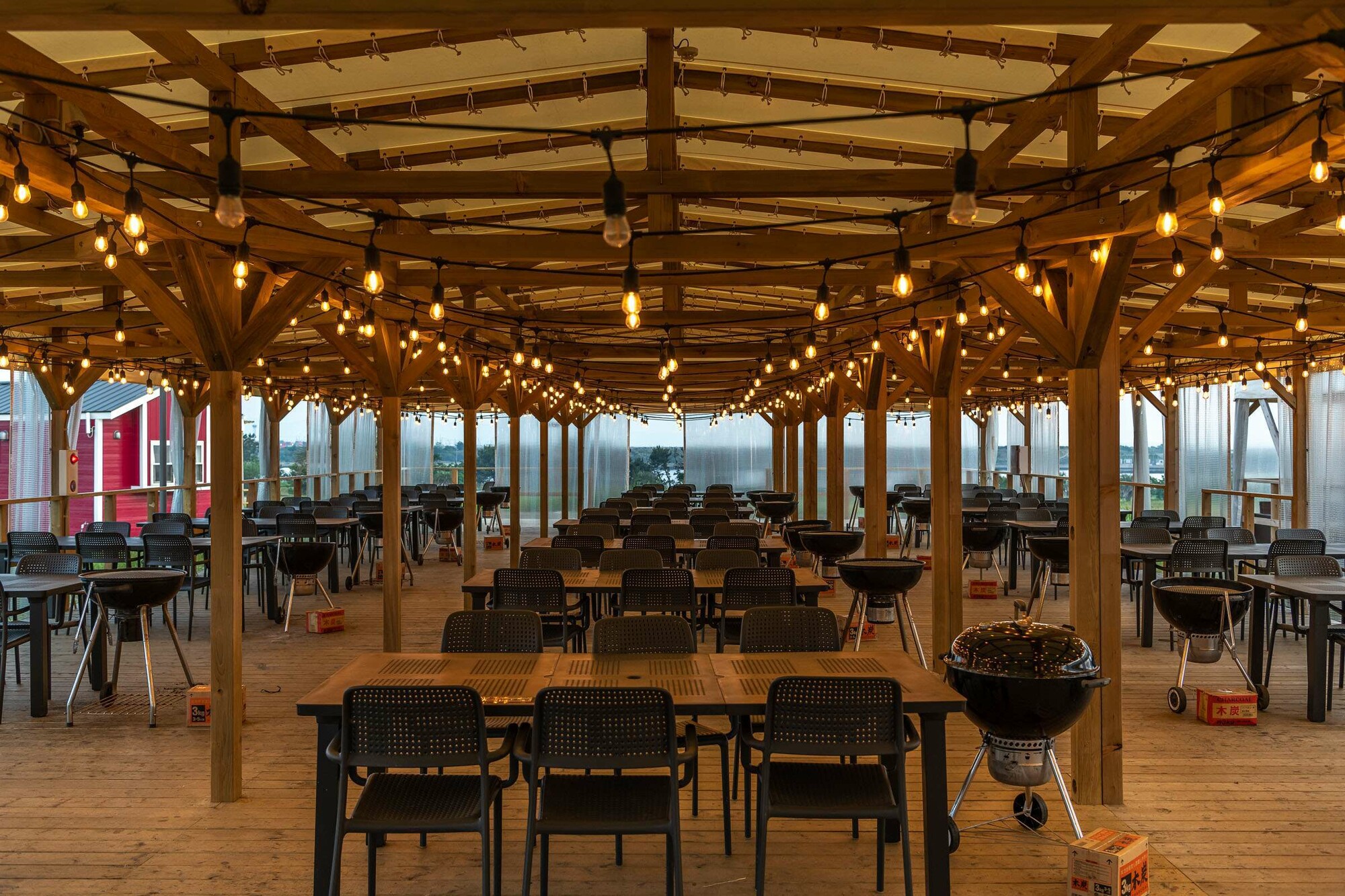 - 大阪市此花区の舞洲にある、グランピング施設。カラフルなトレーラーハウスや、ヤシの木が並ぶ風景は、リゾート感あふれるフォトスポットです。大阪湾を背景にした開放的な景色は、リゾート気分を味わえる写真が撮れます。特に夕暮れ時は、空と海がオレンジ色に染まり、ロマンチックな雰囲気になります。