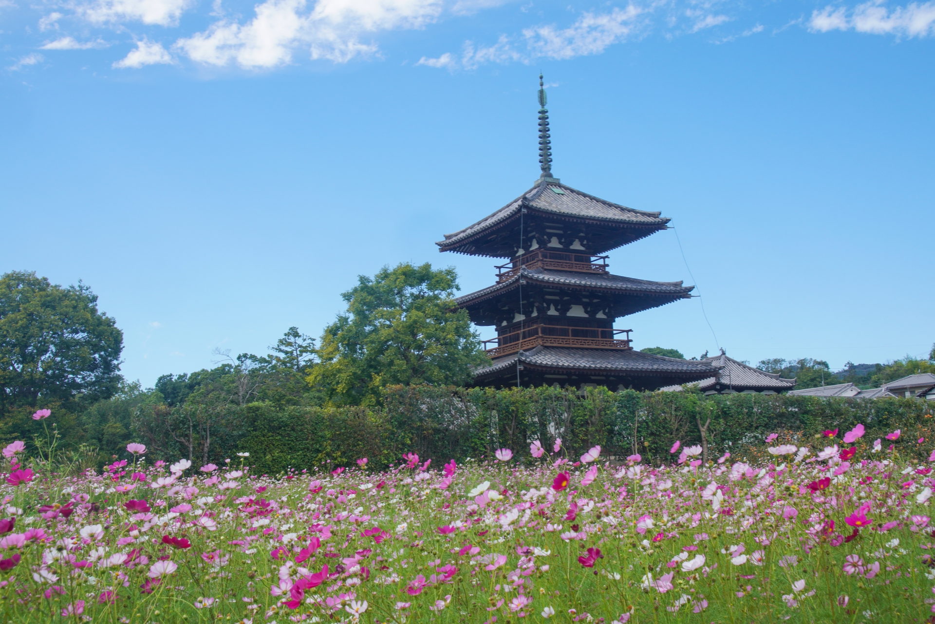 基本情報名称法隆寺概要奈良県斑鳩町にある、聖徳太子ゆかりの寺院。世界最古の木造建築群として世界遺産に登録されており、五重塔や金堂など、飛鳥時代の様式を伝える歴史的な建造物が立ち並びます。厳かで荘厳な雰囲気の中で、日本の古代建築の美しさを感じさせる写真が撮れます。歴史の重みと、静寂な空間が調和したフォトスポットです。住所〒636-0115 奈良県生駒郡斑鳩町法隆寺山内1−1−1電話–営業時間–アクセス–HPhttp://www.horyuji.or.jp/
