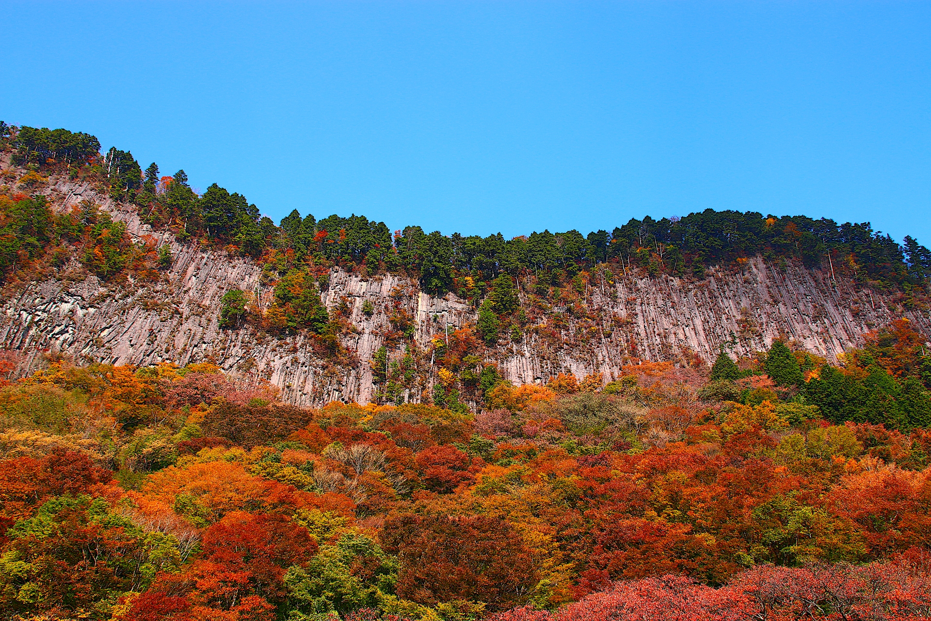 - 奈良県曽爾村にある、巨大な岩壁が屏風のようにそそり立つ景勝地。その雄大でダイナミックな造形美は、自然の力強さを感じさせます。特に秋の紅葉は、岩壁を彩り、壮大な風景が広がります。自然の雄大さと、奇岩のコントラストを捉えたい方に人気のスポットです。