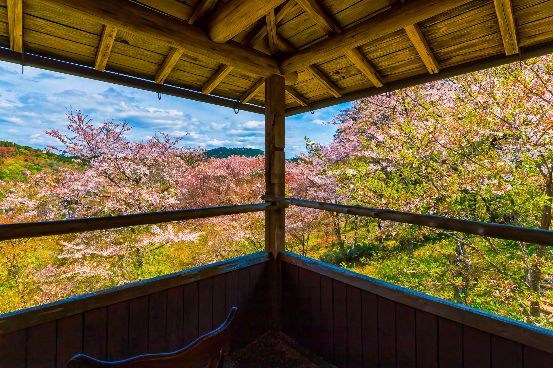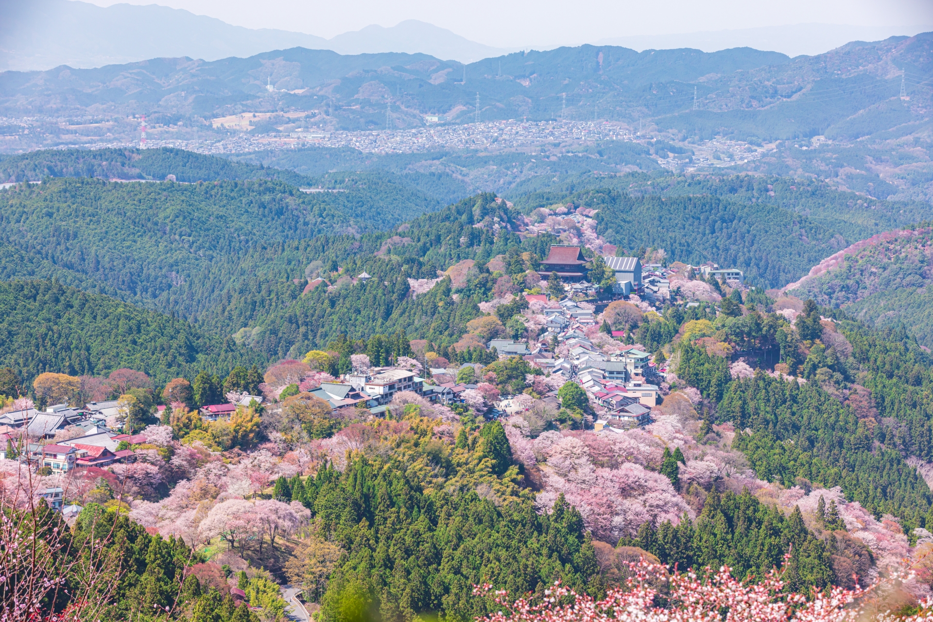 奈良県吉野町にある、日本一の桜の名所。山全体が薄紅色に染まる壮大な光景は、まさに絶景のフォトスポットです。下千本から奥千本まで、場所によって異なる桜の風景が楽しめます。歴史的な寺社仏閣と桜の組み合わせも情緒豊かです。