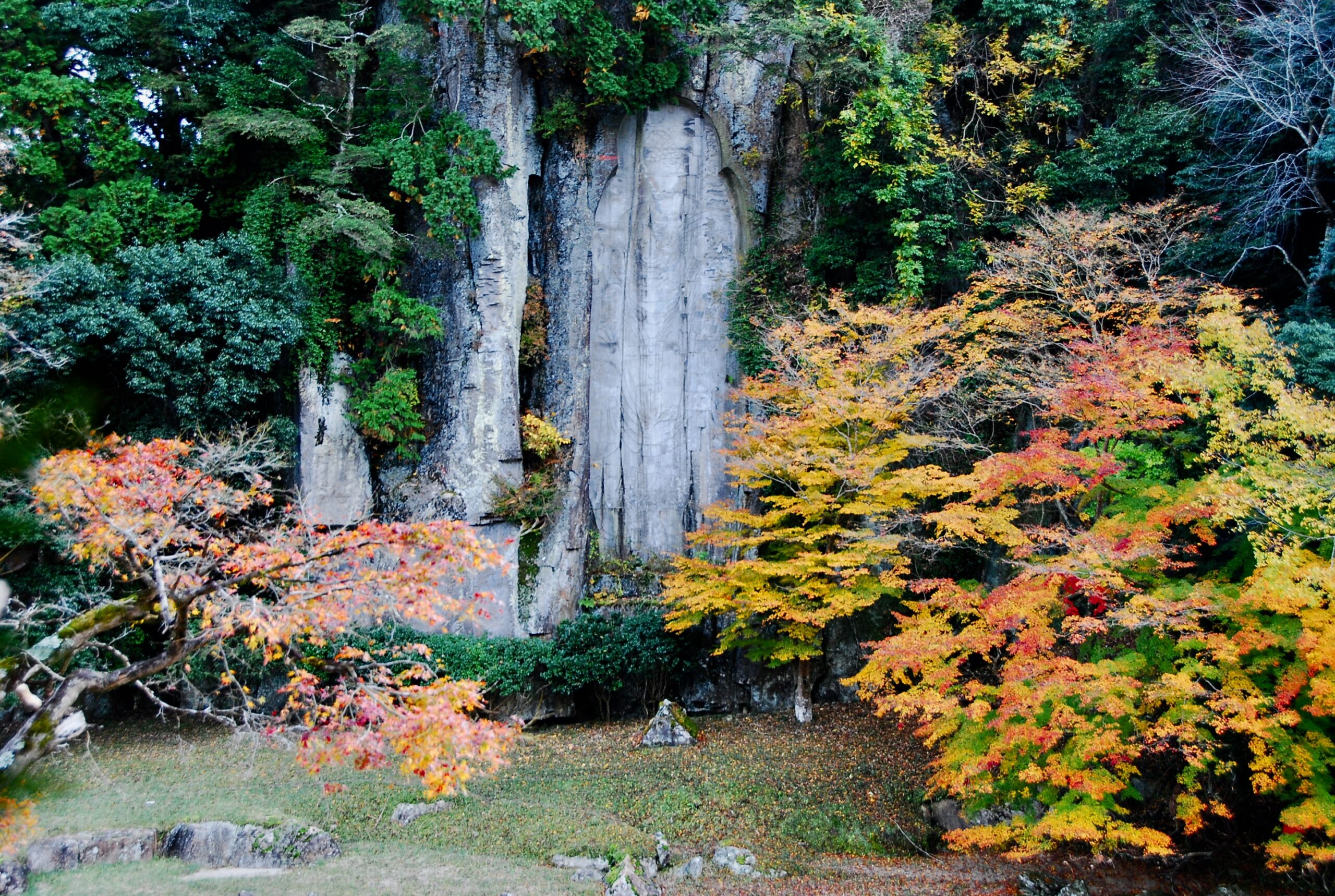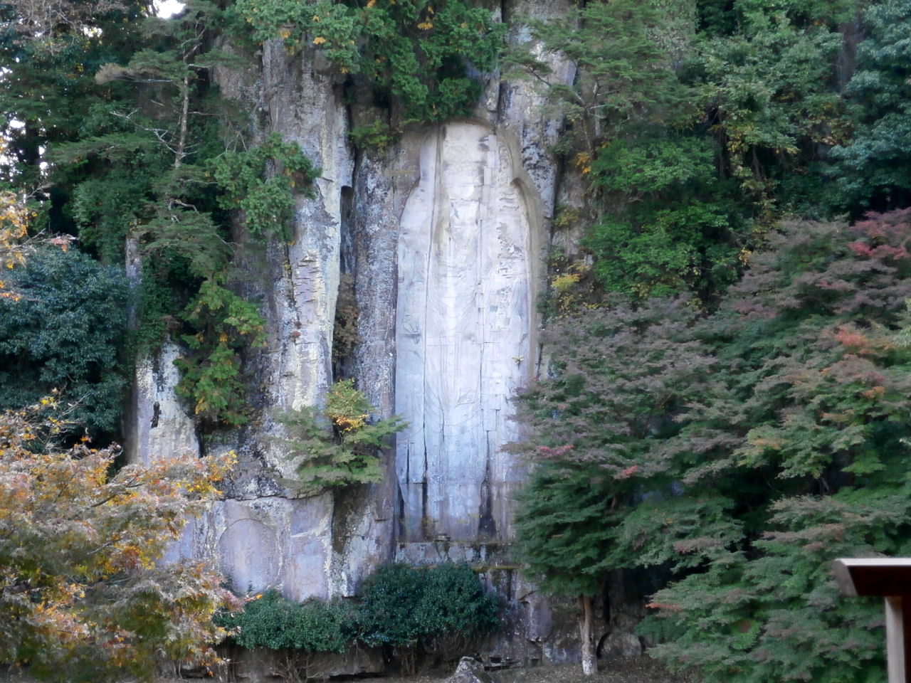 奈良県宇陀市にある、巨大な磨崖仏(弥勒仏)で知られる寺院。高さ約11mの仏像が、岩壁に刻まれた姿は圧巻です。特に紅葉の季節は、鮮やかに色づいた木々と磨崖仏のコントラストが、荘厳で美しい写真を生み出します。自然と信仰が融合したフォトスポットです。