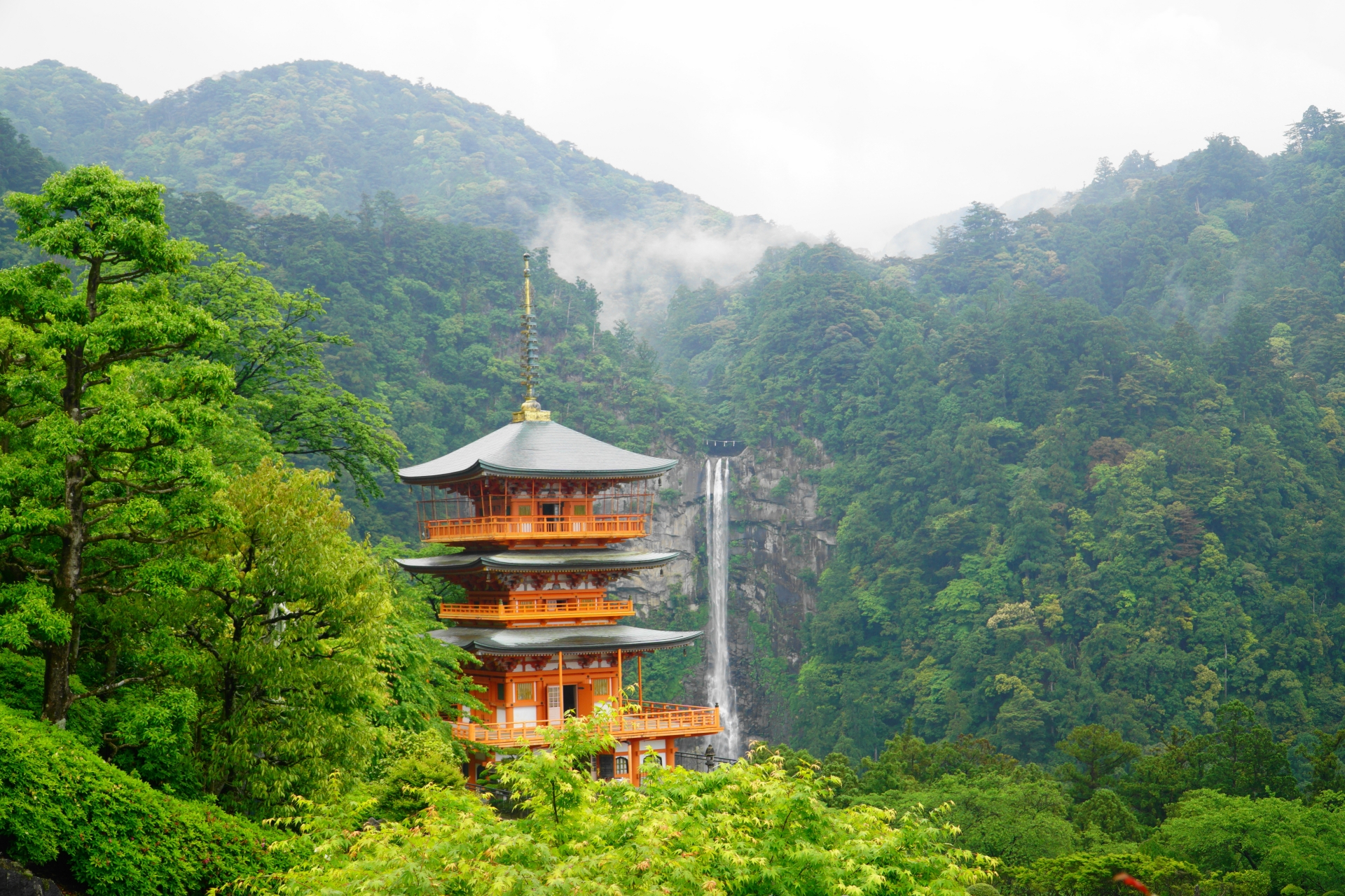 和歌山県那智勝浦町にある、熊野三山の一つ。朱色の社殿と、周囲の深い山々のコントラストは、厳かで神聖な雰囲気が漂います。隣接する那智の滝との組み合わせは、壮大な日本の風景としてフォトジェニックです。