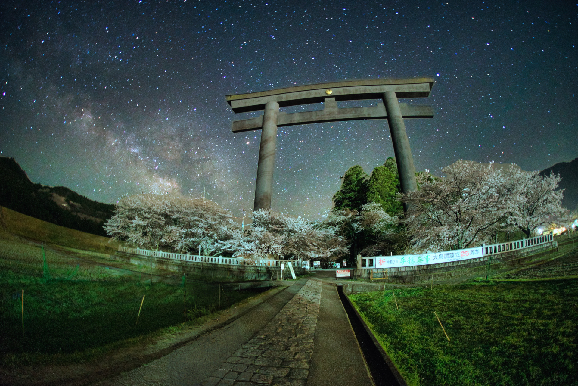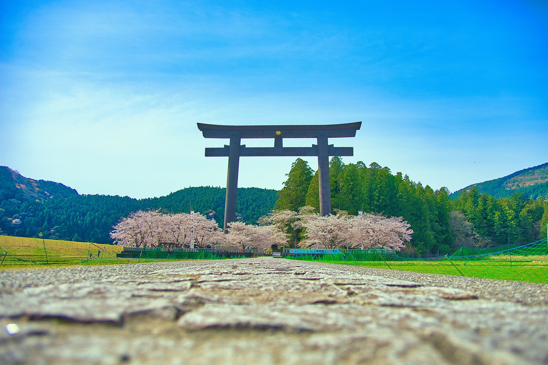 和歌山県田辺市にある、熊野三山の一つ。素朴な木造の社殿と、周囲の深い山々が、厳かで神聖な雰囲気を醸し出しています。旧社地である大斎原の巨大な鳥居もフォトジェニックです。