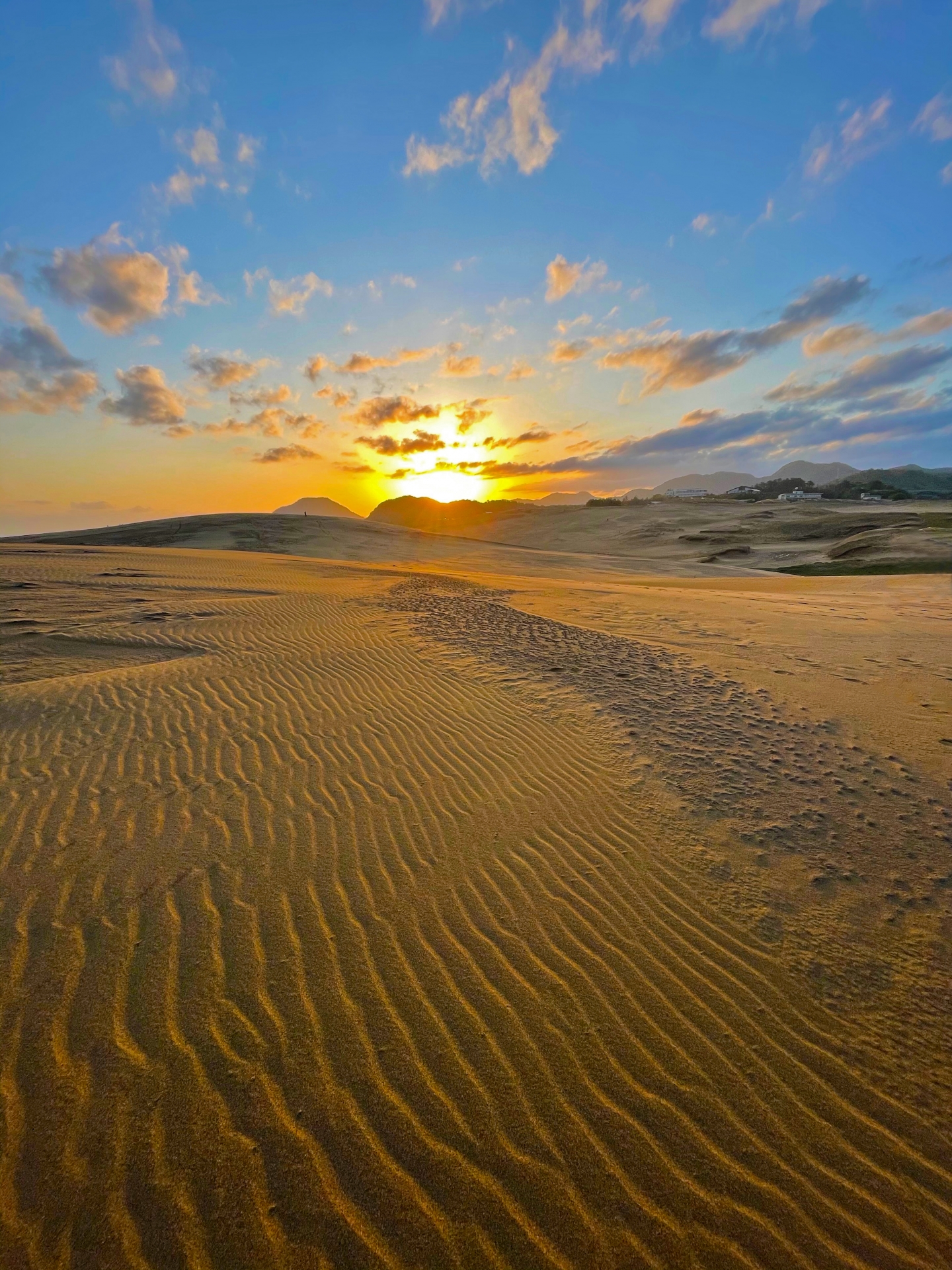 基本情報名称鳥取砂丘概要鳥取県鳥取市にある、日本最大級の砂丘。広大な砂の斜面と、青い空、そして日本海が織りなす風景は、壮大で開放感あふれる写真が撮れます。特に風紋や、夕暮れ時の風景は幻想的です。住所〒689-0105 鳥取県鳥取市福部町湯山2164−661電話–営業時間–アクセス–HPhttps://www.tottori-guide.jp/sakyu/