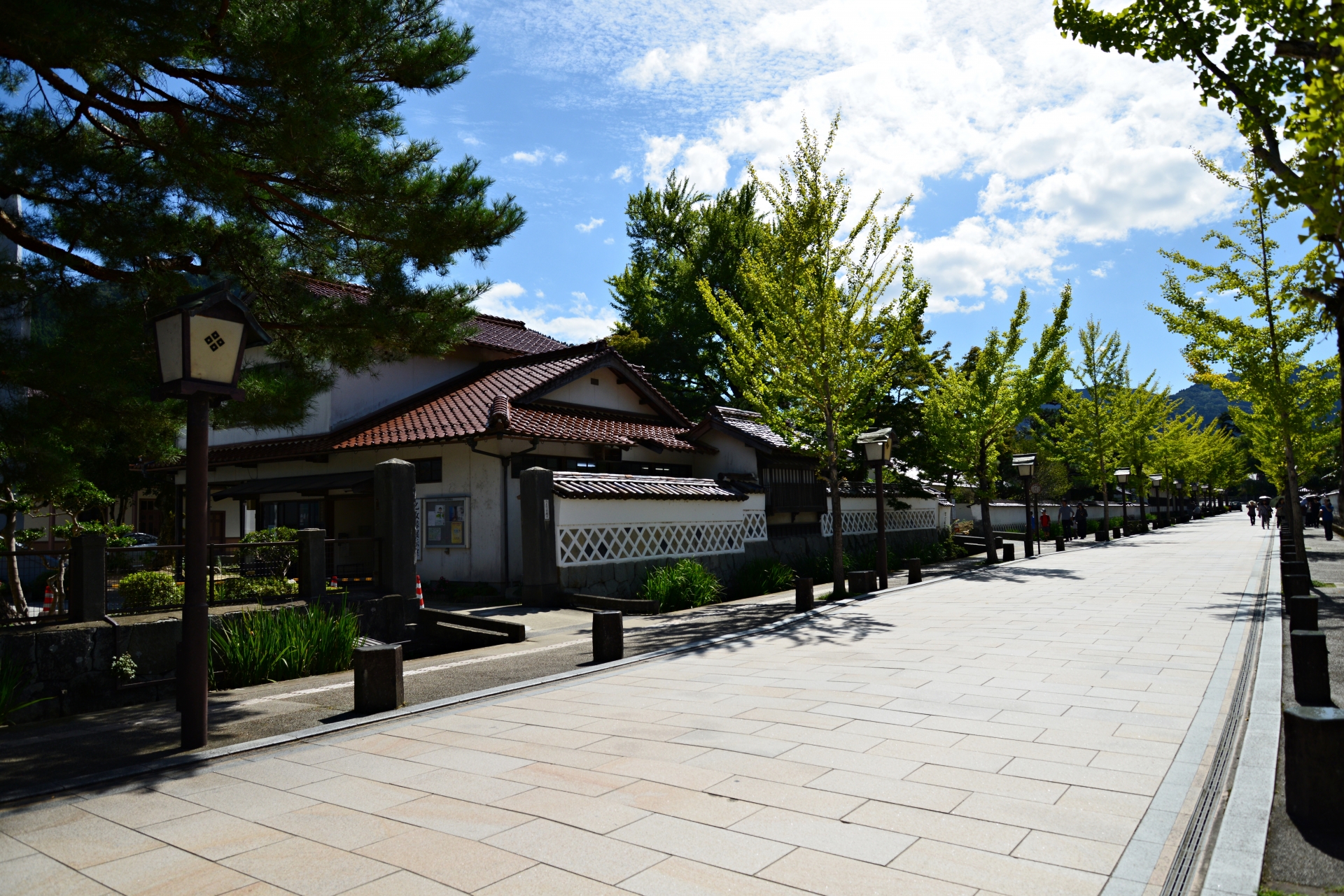 島根県津和野町にある、古い武家屋敷や、白壁の土塀が残る通り。掘割には、色鮮やかな鯉が泳ぎ、情緒豊かな雰囲気を醸し出しています。古い街並みと、鯉を主題にした、和の風情を感じさせる写真が撮れます。