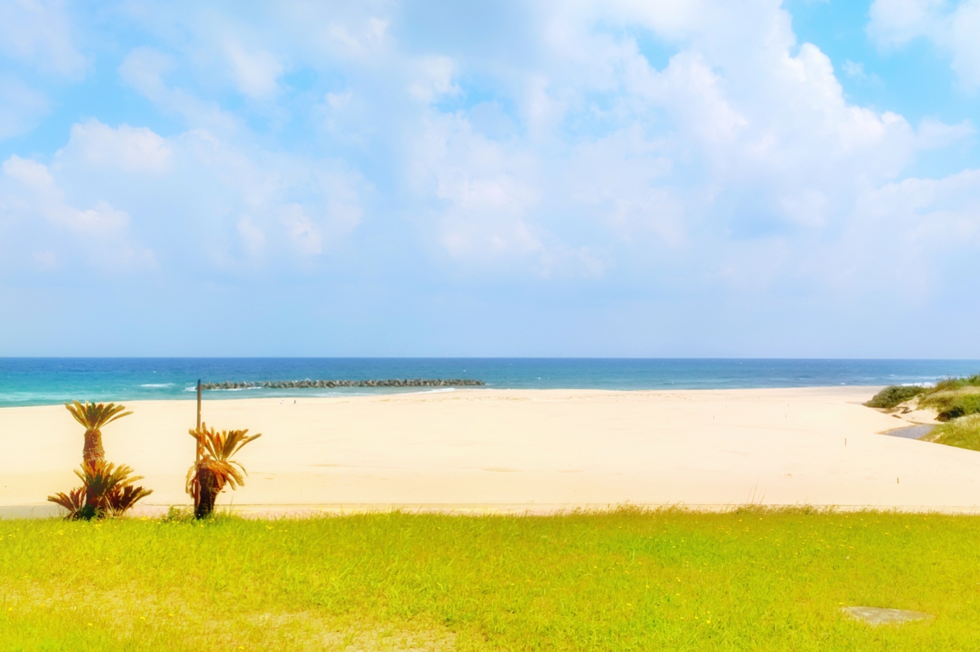 島根県浜田市にある、日本海に面した広大な公園。白い砂浜や、松林、そしてキャンプ場などがあり、自然豊かな風景が楽しめます。開放感あふれる海の風景と、公園の緑が融合した、穏やかな写真が撮れます。