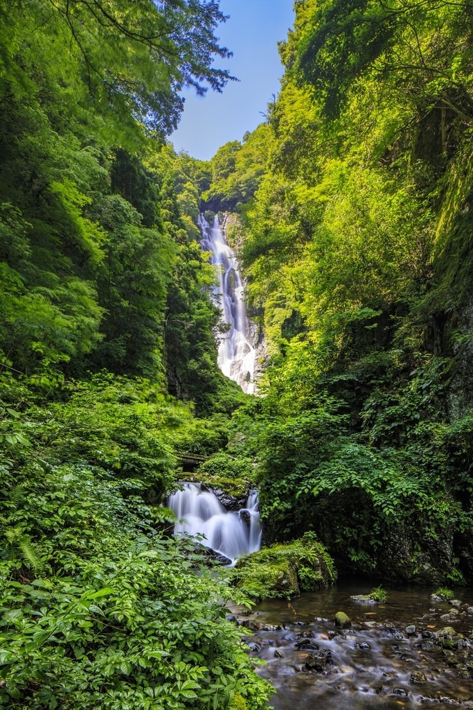岡山県真庭市にある、日本の滝百選にも選ばれている美しい滝。落差約110mから流れ落ちる水と、周囲の豊かな自然が織りなす景観は、壮大でダイナミックな写真が撮れます。野生のサルが生息していることでも知られています。