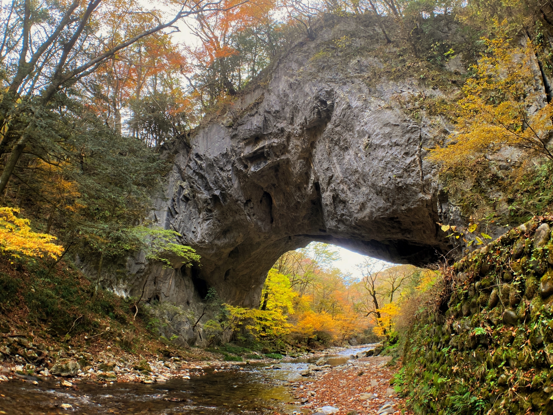 - 広島県庄原市にある、天然のアーチ橋。石灰岩の浸食によってできた巨大なアーチは、自然の力強さと造形美を感じさせます。渓谷の風景と合わせて、壮大でダイナミックな写真が撮れます。