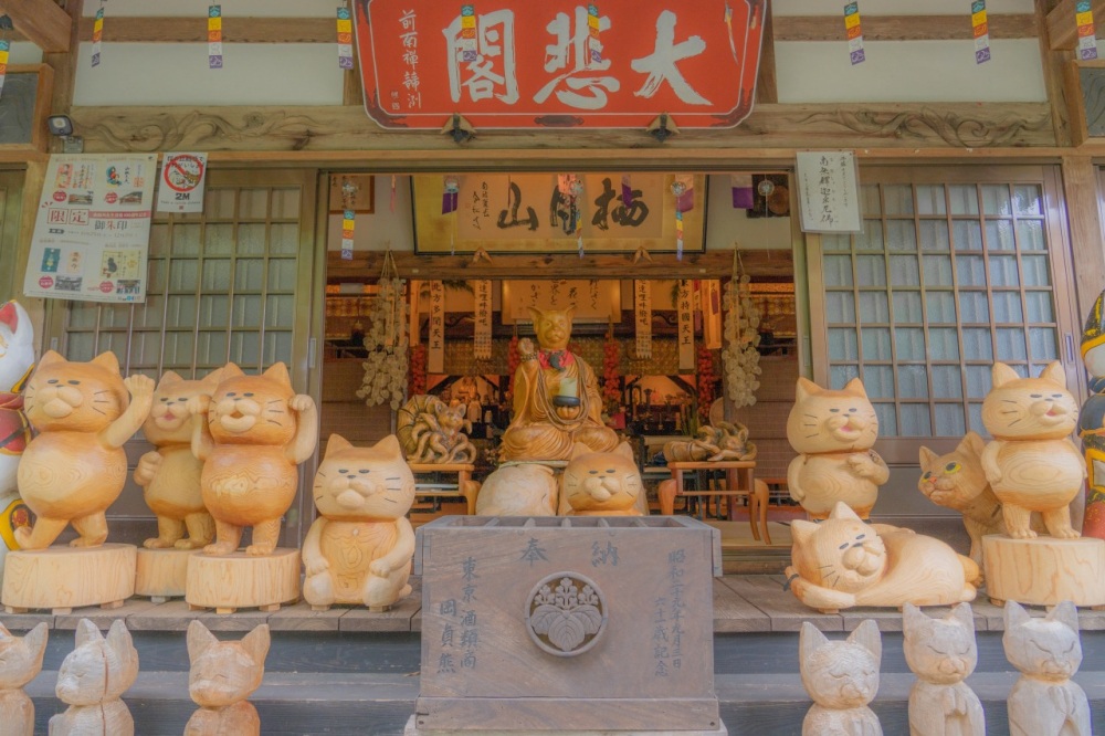 山口県萩市にある、猫寺として知られる寺院。猫のモチーフの置物や、可愛らしい猫たちの姿が、ユニークで癒やされる写真が撮れます。