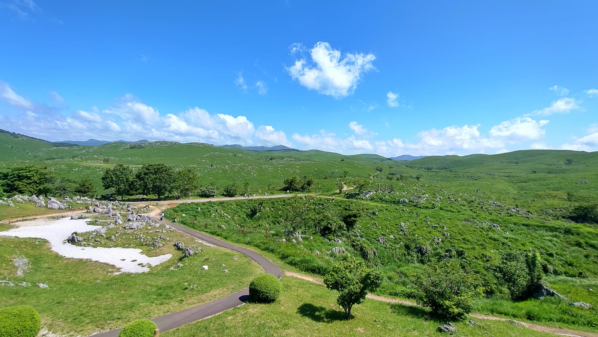 (上記「秋吉台」と同じ場所)山口県美祢市にある、秋吉台のカルスト台地を一望できる展望台。広大な草原と、石灰岩の風景が、壮大で美しい絶景写真が撮れます。