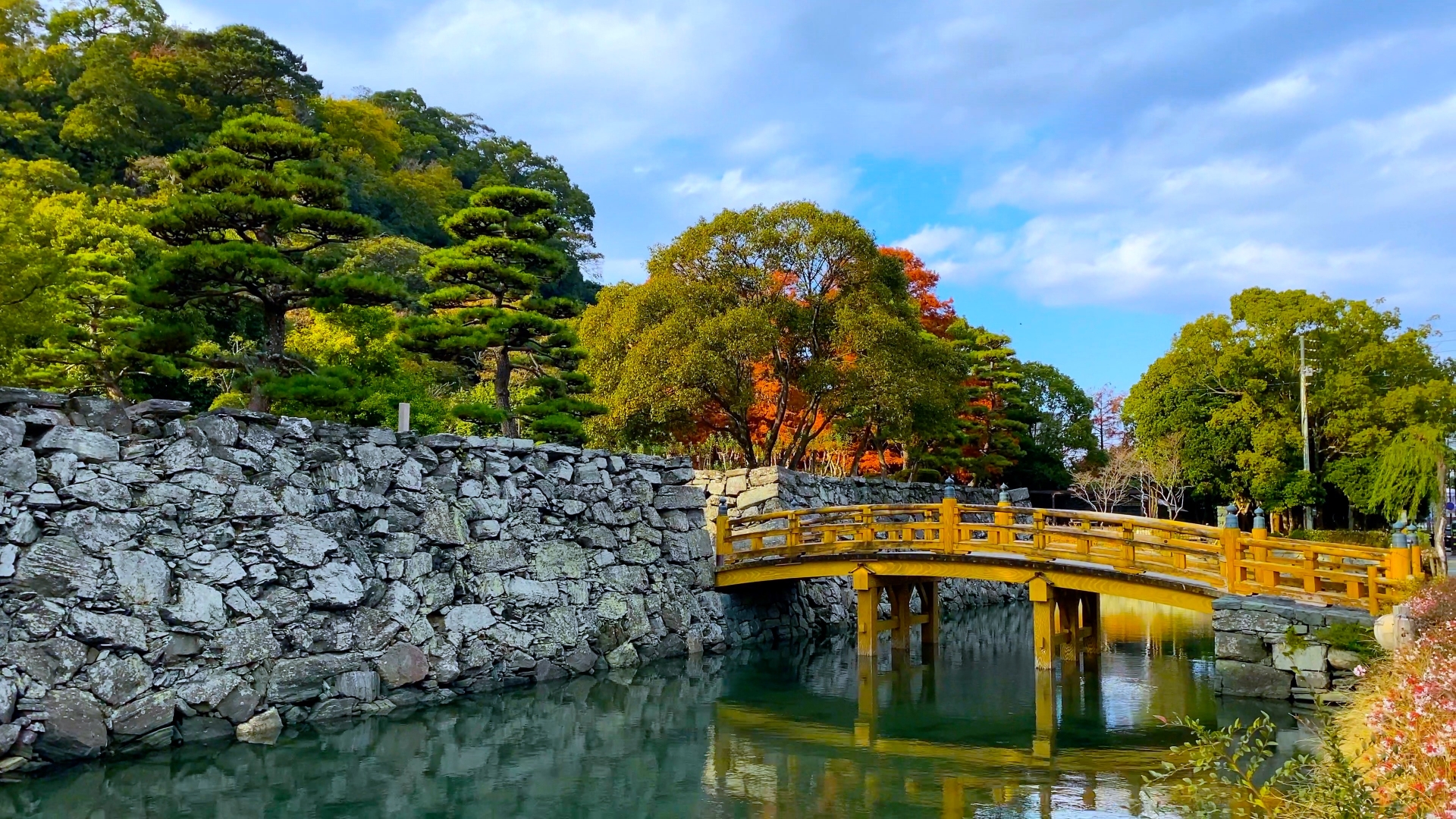 徳島県徳島市にある、徳島城跡を整備した公園。特に、城の石垣や、堀、そして公園の緑が、歴史と自然が融合した風景を作り出しています。
