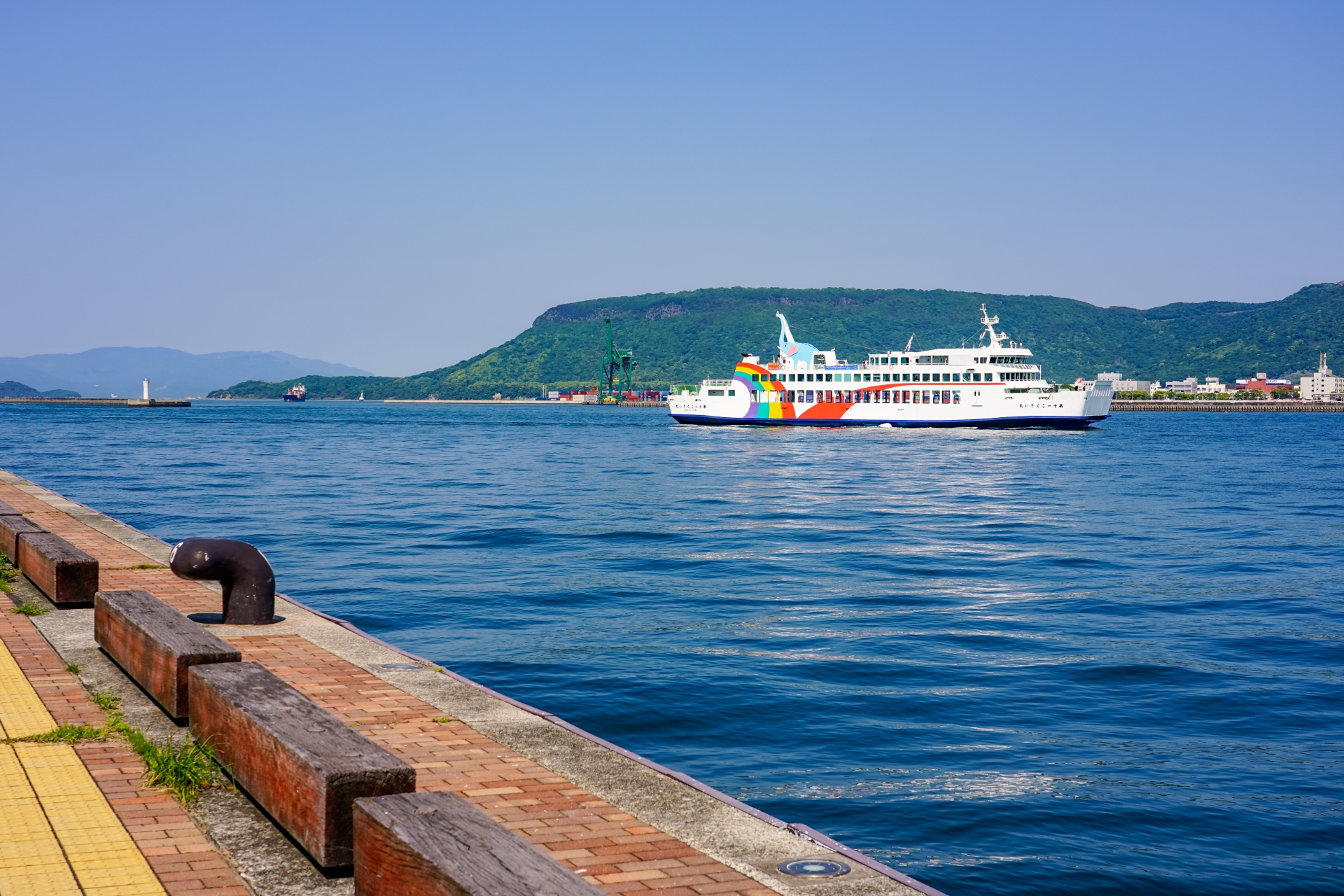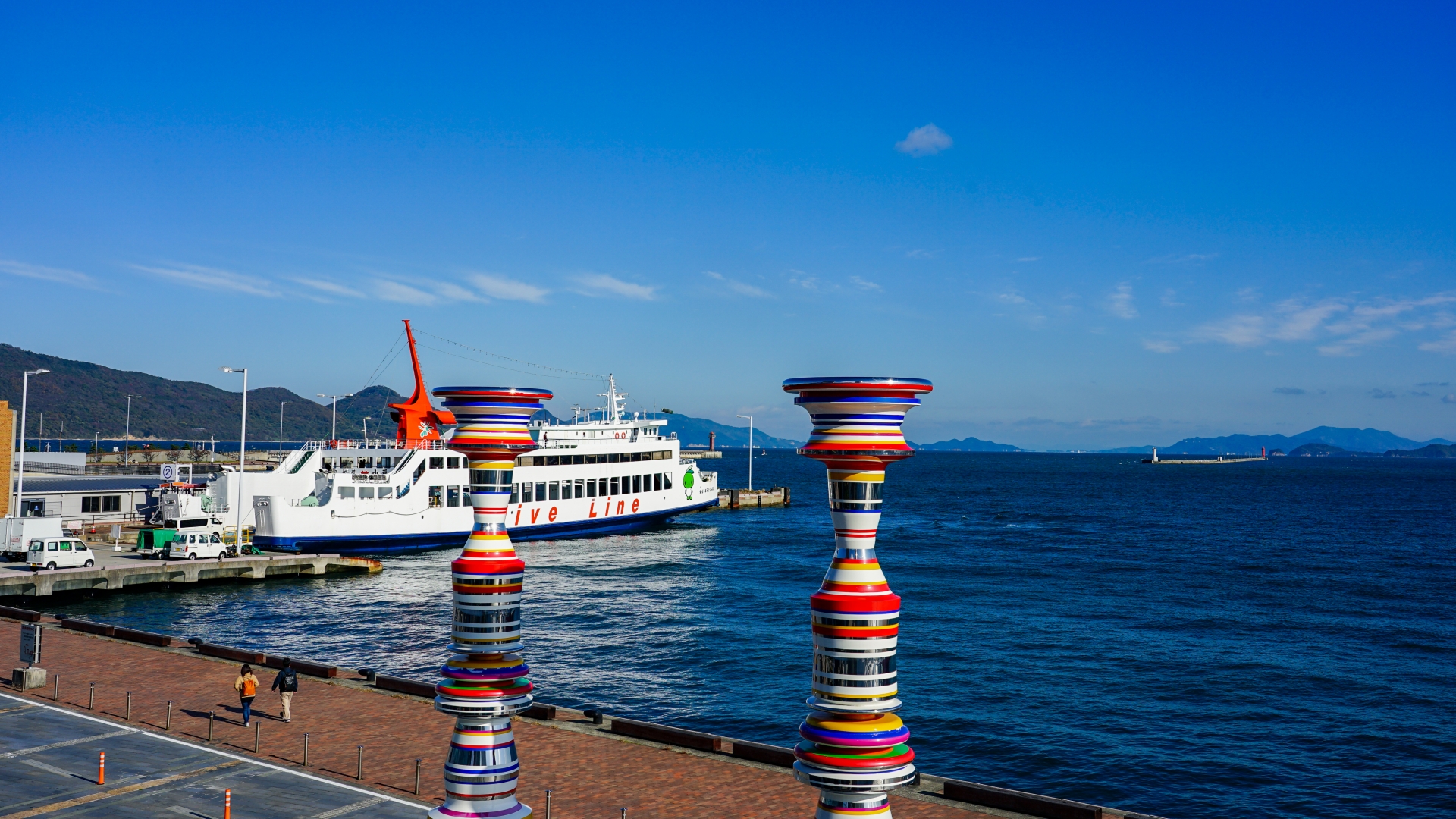 香川県高松市にある港。瀬戸内海の島々へのフェリーが行き交う風景や、草間彌生氏の「赤かぼちゃ」がフォトジェニックです。
