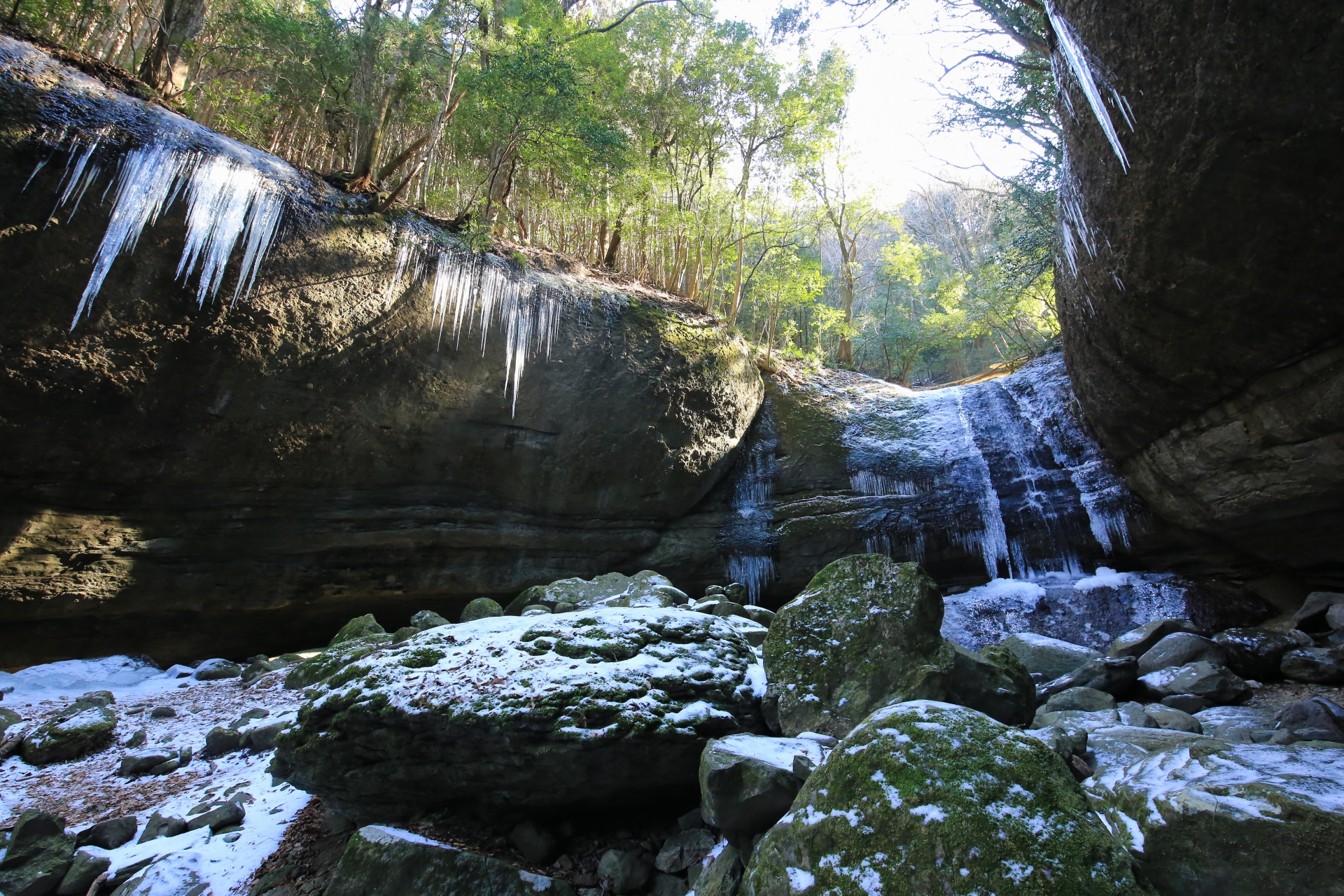 - 愛媛県東温市にある、皿ヶ嶺連峰から流れ出る滑川にある渓谷です。一枚岩の広い岩盤を清流が滑るように流れる独特の地形が特徴で、「龍の壺」と呼ばれる甌穴(おうけつ)群は特に有名。苔むした岩と透明度の高い水のコントラストが美しく、新緑や紅葉の時期にはさらに格別です。自然が作り出した芸術的な景観を堪能できます。