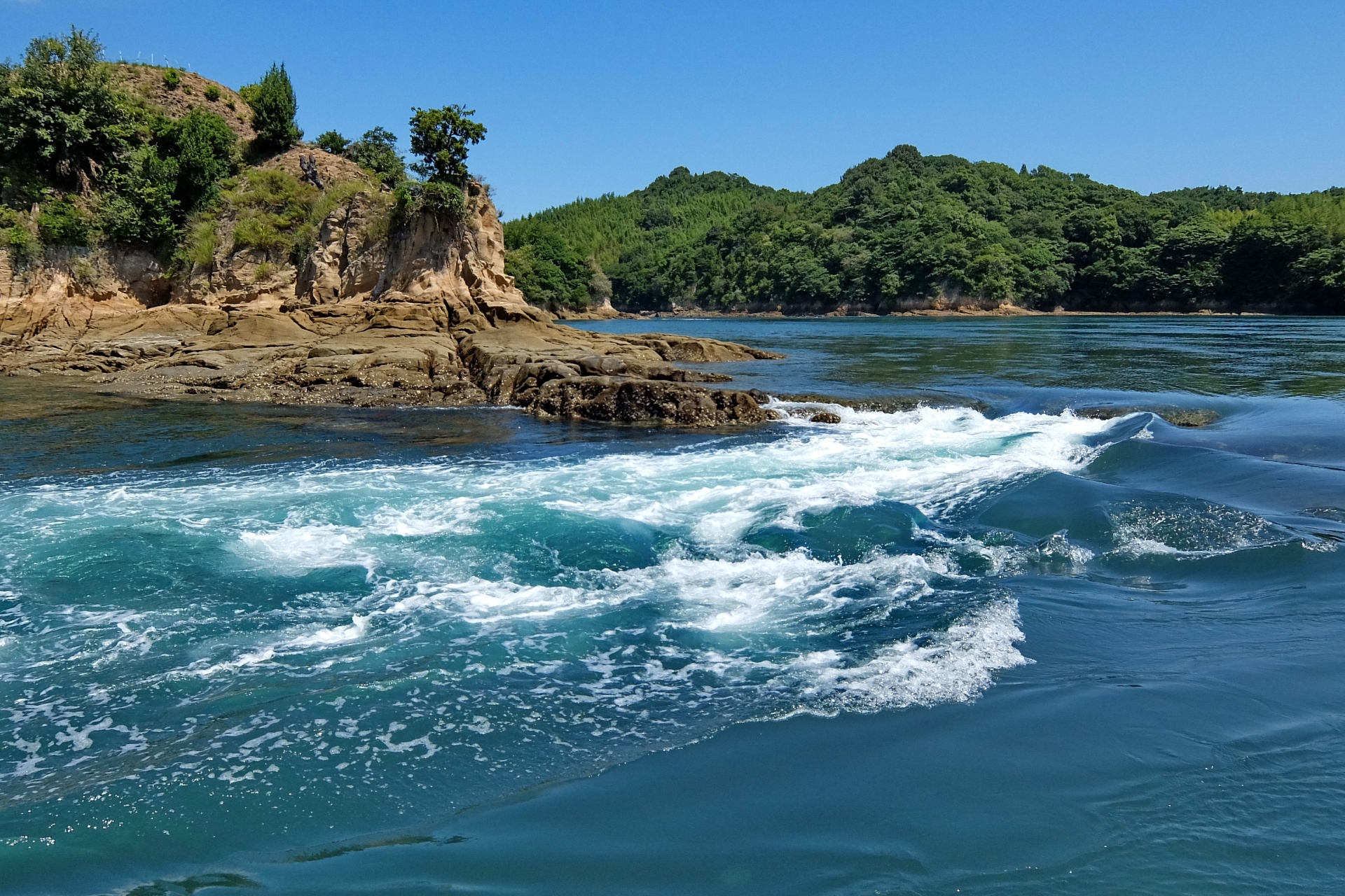 愛媛県今治市の伯方島と鵜島の間にある海峡で、日本有数の潮流の速さを誇る場所です。その名の通り、かつて船が折れるほど激しい潮流であったことから名付けられました。潮流が岩肌を洗う迫力ある光景は、自然の力の壮大さを感じさせます。展望台からは、激しい潮の流れと瀬戸内海の多島美を同時に楽しむことができます。