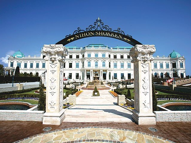 - 愛媛県今治市にある、食品メーカー日本食研の工場敷地内に建つ宮殿風の建物です。ヨーロッパの宮殿を思わせる豪華絢爛な外観は、工場とは思えないほどの美しさで、写真映えするスポットとして知られています。予約をすれば工場見学も可能で、異国情緒あふれる雰囲気の中で、ユニークな写真を撮ることができます。