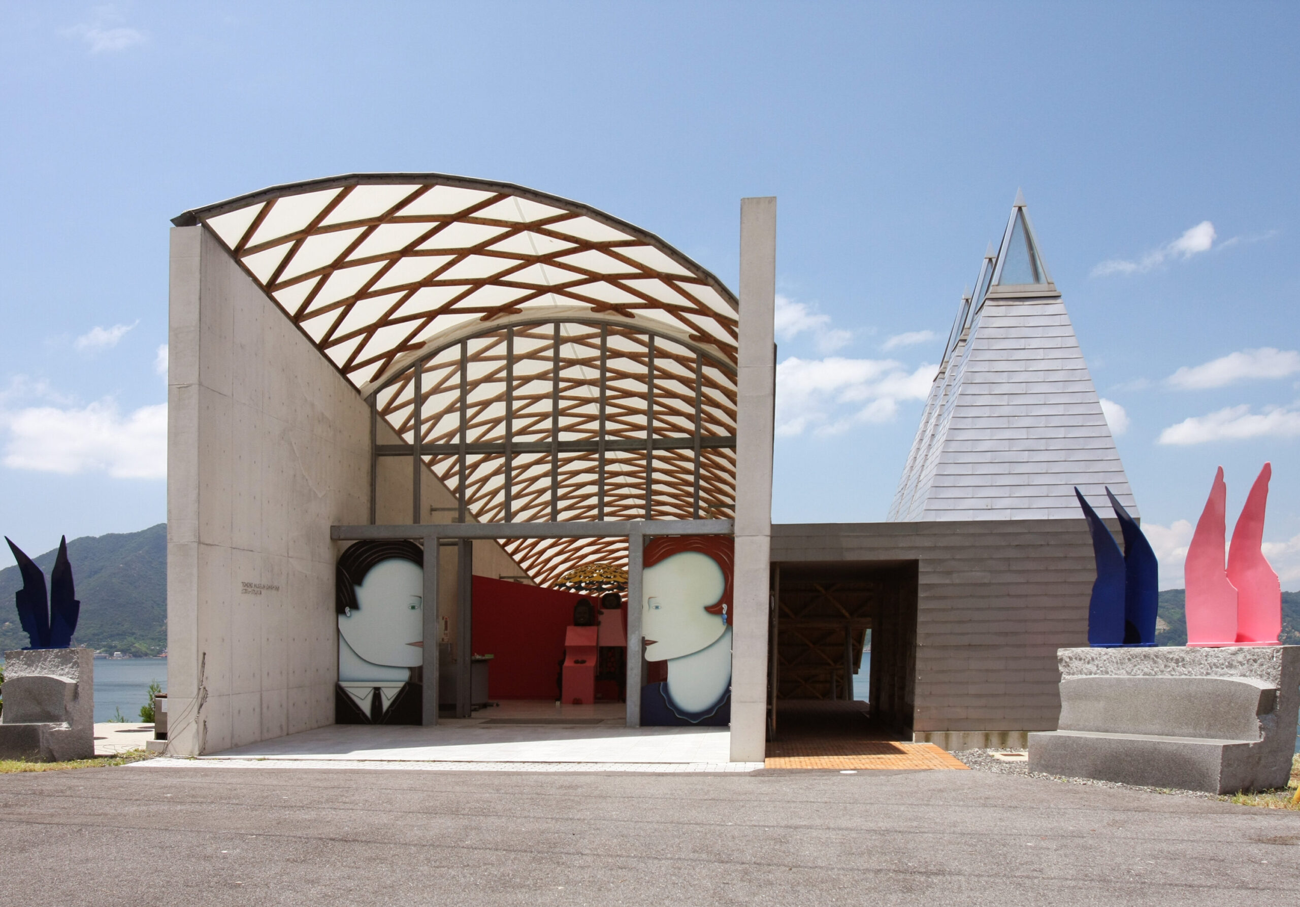 - 愛媛県今治市の大三島にある現代アートの美術館です。瀬戸内海を見下ろす高台に建ち、屋外には彫刻作品が点在しています。建物のデザインもユニークで、自然とアートが融合した空間が魅力。瀬戸内海の絶景を背景に、モダンなアート作品を写真に収めることができる、開放的な雰囲気のスポットです。