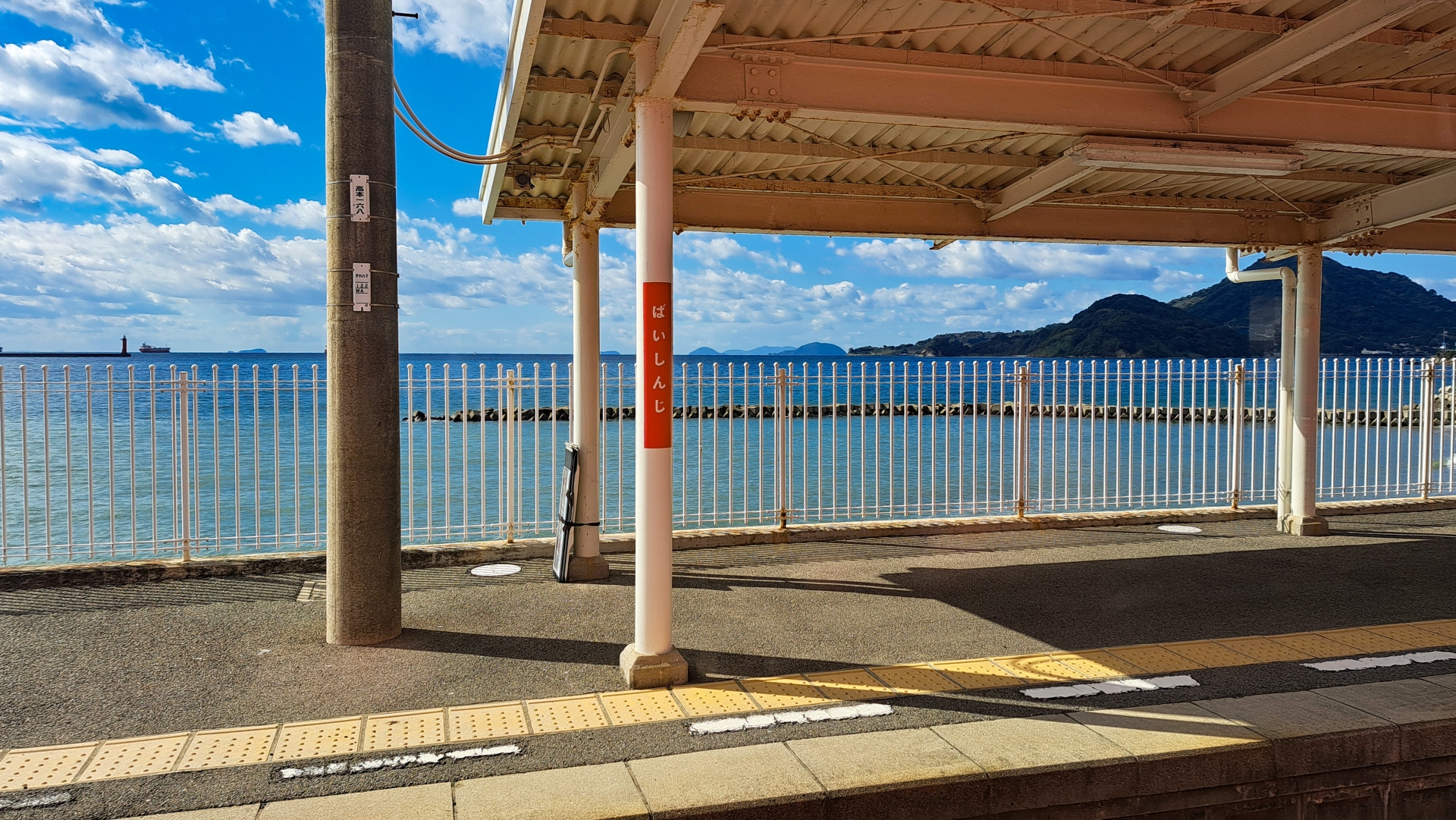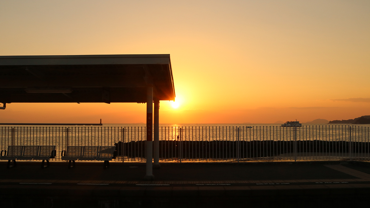 愛媛県松山市にある伊予鉄道の駅で、海に面したホームが特徴です。ドラマのロケ地として有名になり、特にヒロインがコートを柵に結びつけるシーンの再現写真が人気です。ホームからは穏やかな伊予灘を一望でき、特に夕暮れ時は美しい景色が広がります。海の青と空のコントラストが美しい、ロマンチックな雰囲気の駅です。