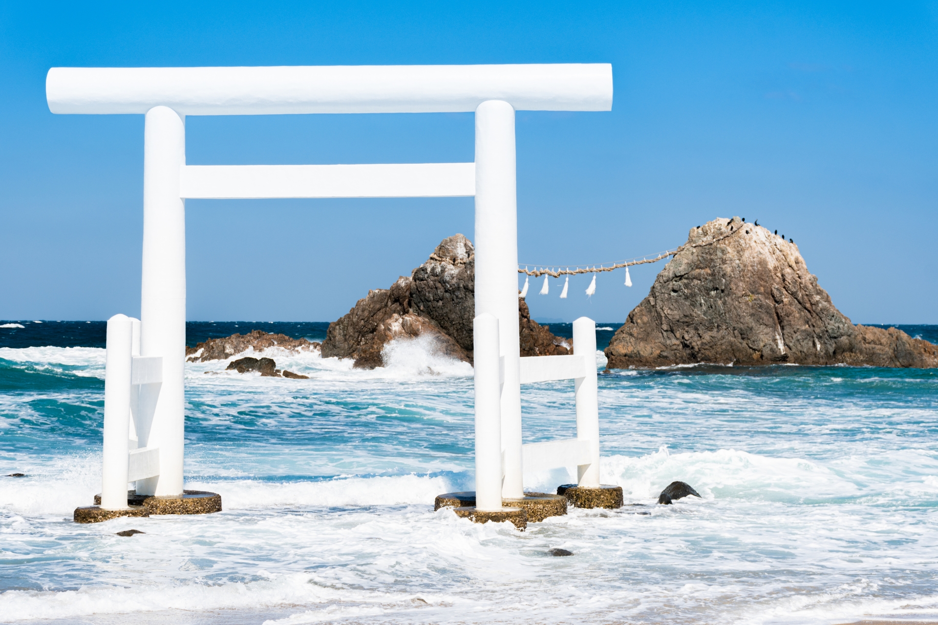 基本情報名称二見ヶ浦概要福岡県糸島市にある、夫婦岩が特徴的な海岸です。海岸から約150m沖合に立つ大小二つの岩が、注連縄で結ばれています。特に夕日の名所として知られ、夕日が夫婦岩の間に沈む光景はロマンチックです。住所〒819-1304 福岡県糸島市志摩桜井電話–営業時間–アクセス–HPhttps://www.city.itoshima.lg.jp/s026/s040/010/020/010/050/sakurai.html