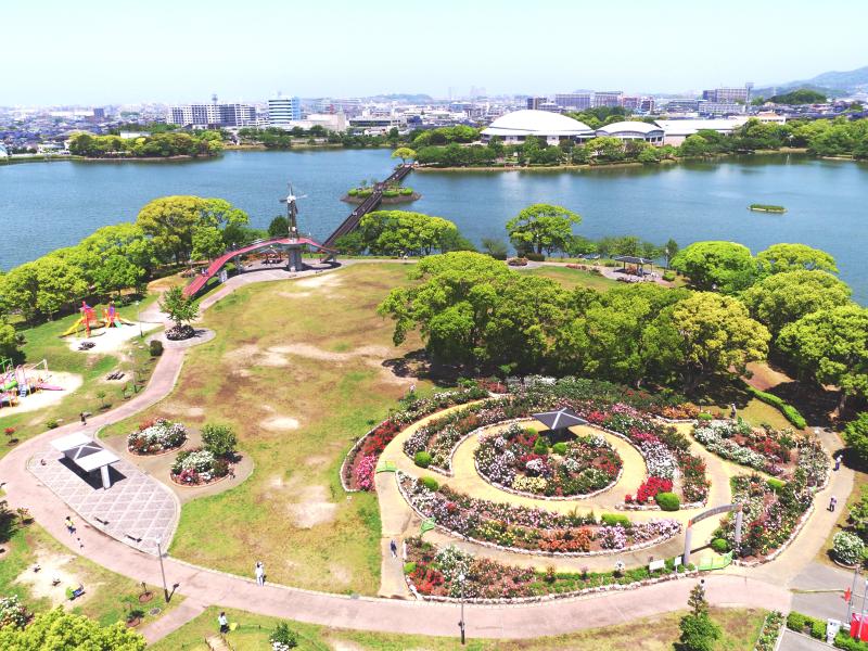 福岡県糟屋郡粕屋町にある、駕与丁池を中心とした広大な公園です。池の周囲には遊歩道やサイクリングロードが整備されており、四季折々の花や景色を楽しめます。特に春には桜の名所として知られ、多くの花見客で賑わいます。