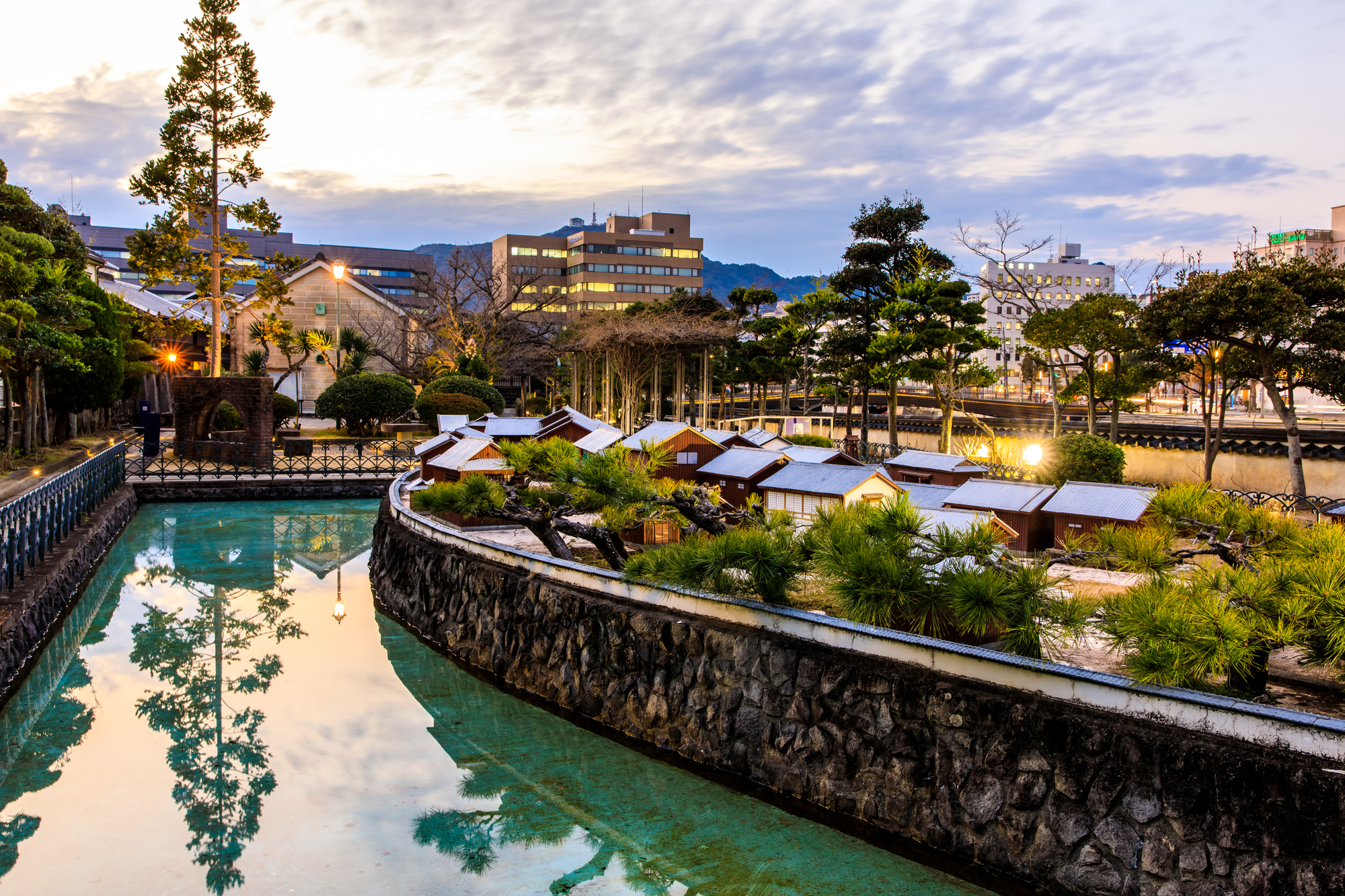長崎県長崎市にある、江戸時代に鎖国政策下で唯一西洋との貿易が許された人工島です。現在は当時の街並みが復元され、歴史的な雰囲気を体験できます。異国情緒あふれる長崎のシンボル的な存在です。