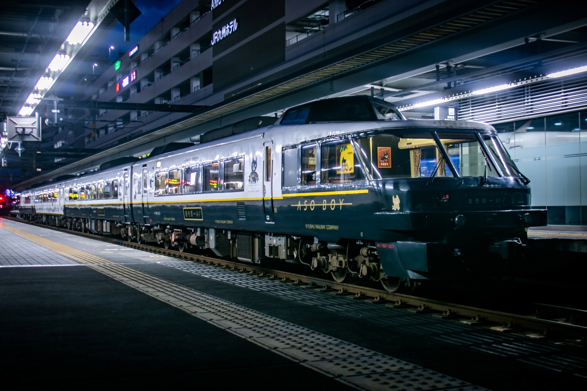 - 熊本・別府と阿蘇を結ぶ人気の観光特急。白を基調とした車体には、かわいいマスコット犬「くろ」のイラストが描かれ、乗車するだけで旅の気分を盛り上げてくれます。特に注目は、広い窓から雄大な阿蘇の景色を楽しめる「パノラマシート」や、親子連れに人気の「くろカフェ」、そして「木のプール」や絵本が並ぶ「ファミリー車両」!車内の随所にフォトジェニックな空間が広がり、旅の思い出を彩る一枚がきっと見つかります。