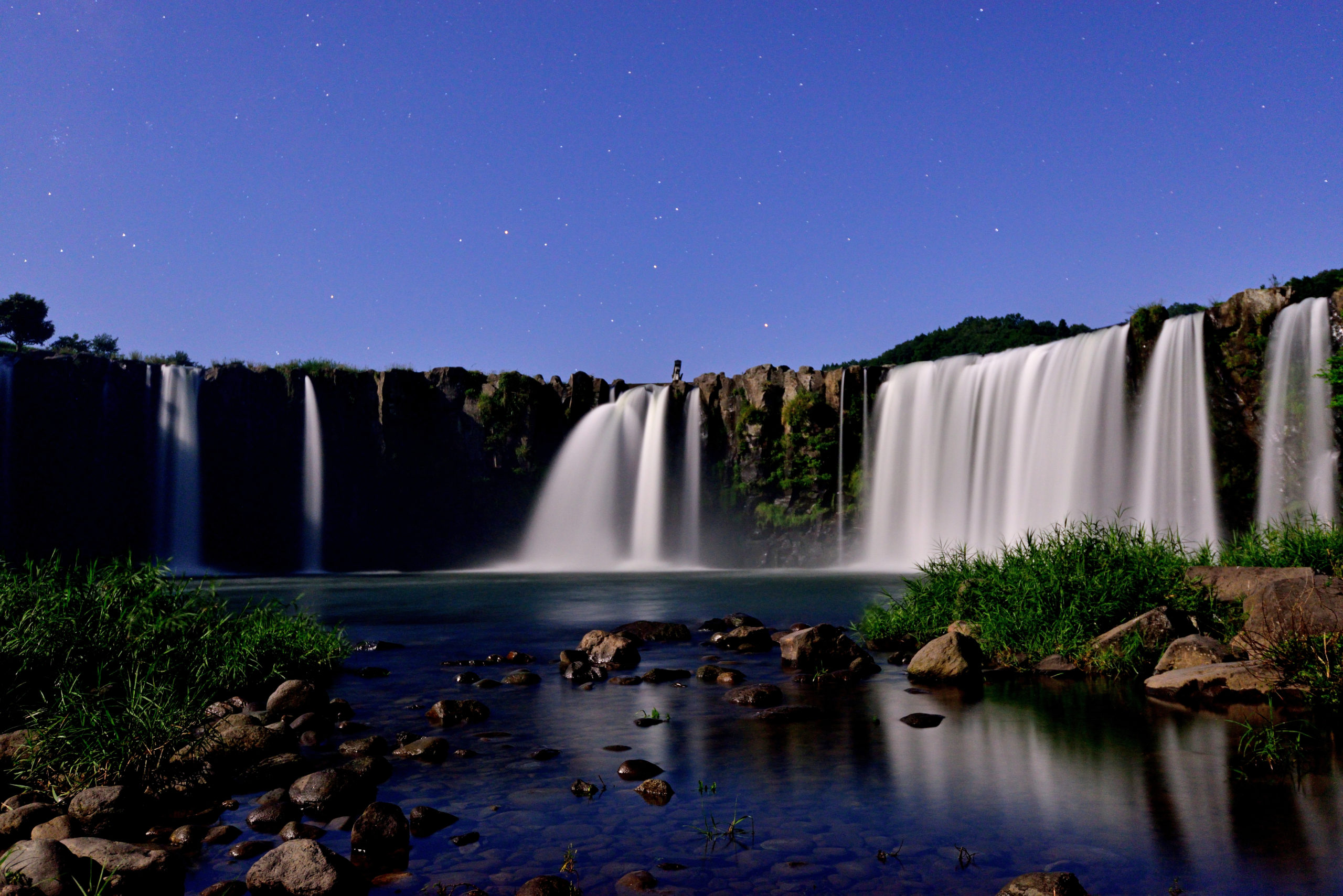 - 大分県豊後大野市にある、幅120m、高さ20mの雄大な滝。「東洋のナイアガラ」とも称され、田園風景の中に突如として現れるその姿は圧巻です。滝壺の周りを遊歩道が囲んでおり、様々な角度から滝の迫力を撮影できます。特に、滝の上にかかる吊り橋「轟橋」から見下ろすアングルは、滝の全体像とダイナミックな地形を一枚に収めることができます。春には菜の花、秋には稲穂といった周囲の景色とのコントラストも美しいフォトスポットです。