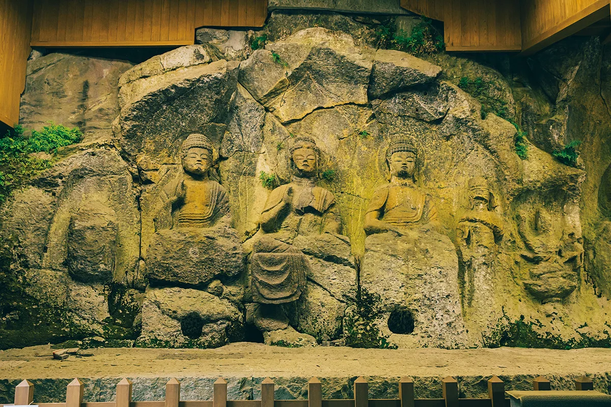 - 臼杵市深田にある、平安時代後期から鎌倉時代にかけて彫られたとされる摩崖仏(まがいぶつ)。4群60余体の石仏群は、国宝に指定されており、その歴史的価値と静謐な美しさが魅力です。石仏の柔和な表情や、岩肌に刻まれたレリーフのディテールを捉えることで、時の流れを感じさせる深い写真が撮れます。周囲の竹林や苔むした石段も、神秘的な雰囲気を醸し出し、静寂の中で心が洗われるような一枚を撮影できます。