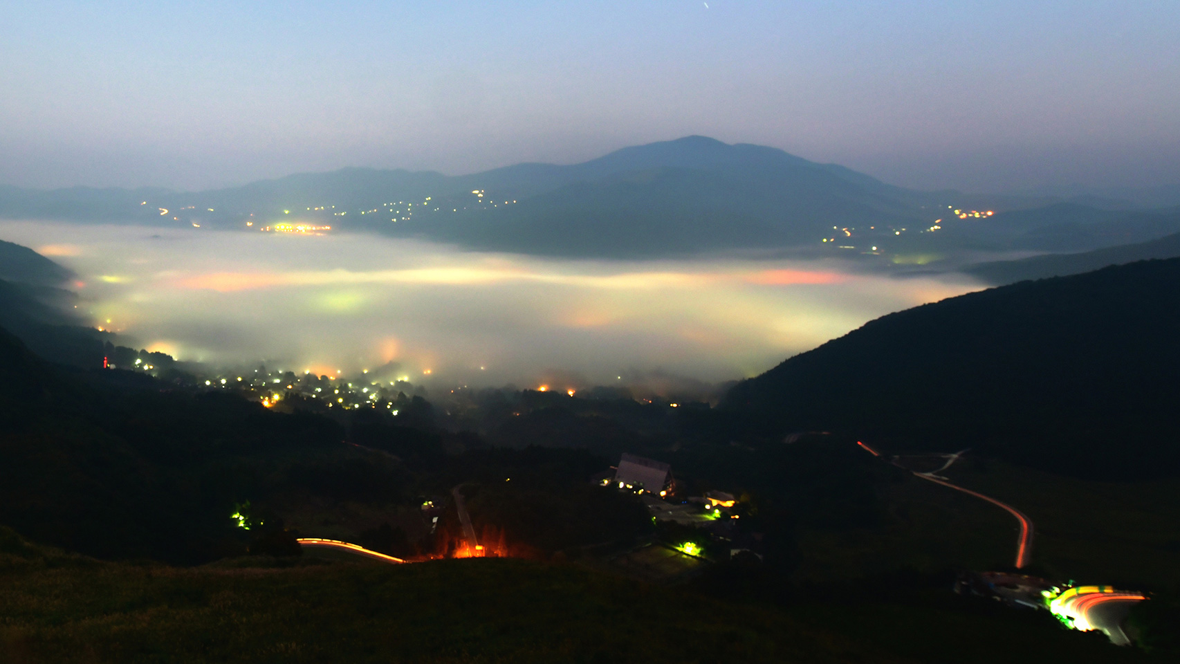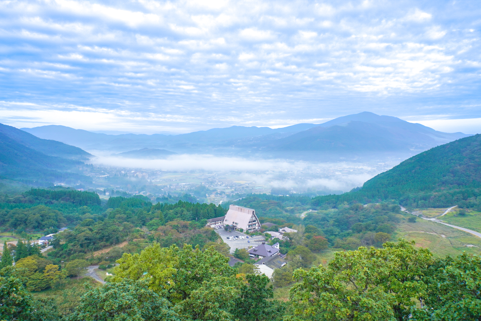 - 由布院盆地と由布岳を一望できる、やまなみハイウェイ沿いの展望台。由布院温泉街への入口に位置し、ドライブの休憩スポットとしても人気です。特に、早朝の冷え込んだ日には、由布院盆地を覆い尽くす朝霧(狭霧)の幻想的な光景を望むことができます。朝霧に浮かぶ由布岳の姿は、多くのカメラマンを魅了します。雄大な自然のパノラマを背景にした、開放感あふれる写真を撮るのに最適です。