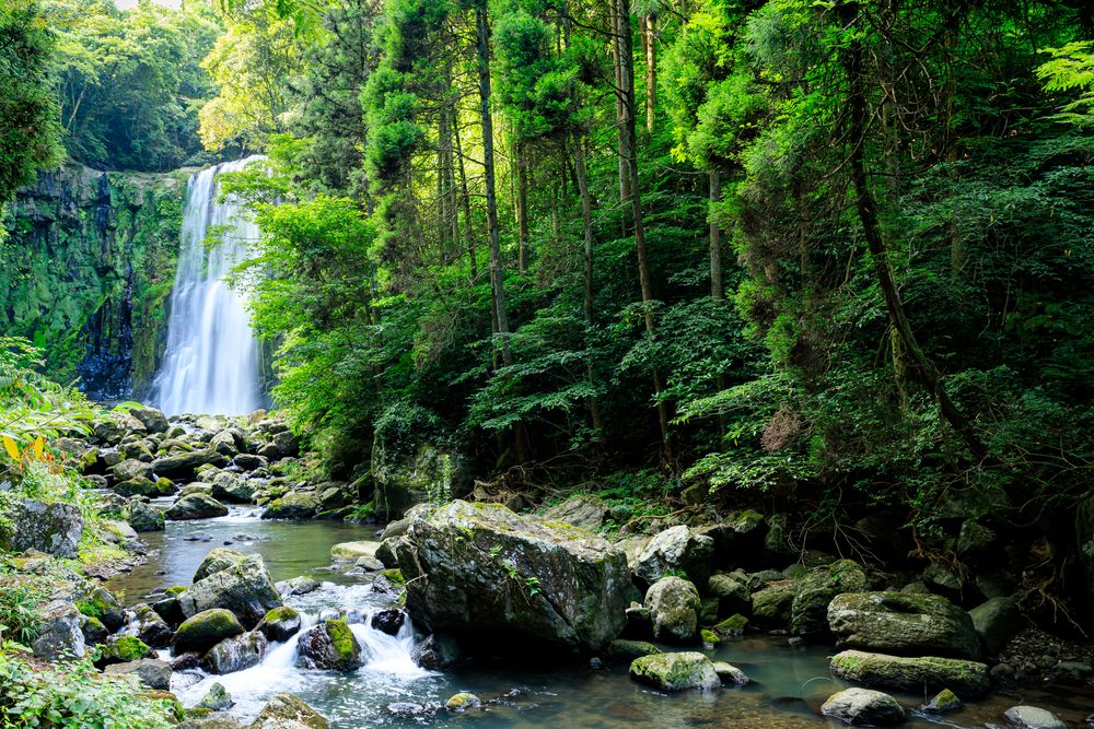 - 日田市にある、玖珠川の支流にかかる落差25mの滝。岩肌を滑るように流れ落ちる白い水が、周囲の緑と調和し、優雅で美しい景観を作り出しています。水量の多い時は迫力がありますが、穏やかな流れの時は優美さが際立ちます。滝壺の近くまで行くことができ、マイナスイオンを感じながら、清涼感あふれる写真を撮ることができます。滝の名前の通り、春の桜の時期は特に美しいです。