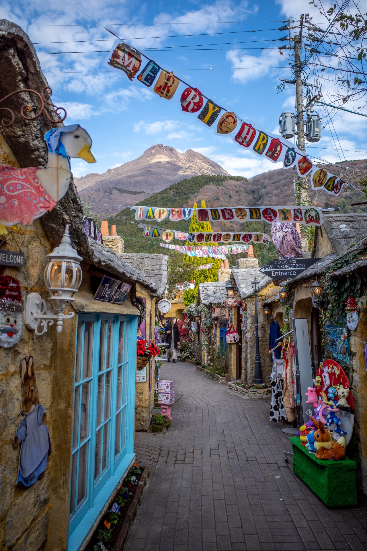 - 由布院にある、イギリスのコッツウォルズ地方をイメージしたテーマパーク。石畳の小道に、可愛らしい煉瓦造りの建物が並び、まるで絵本の世界に入り込んだようなメルヘンチックな雰囲気が漂います。猫やフクロウなどの動物と触れ合える施設もあります。どこを切り取ってもフォトジェニックで、特に、建物や看板、花々を背景にしたポートレートは、ロマンチックで可愛らしい写真になります。