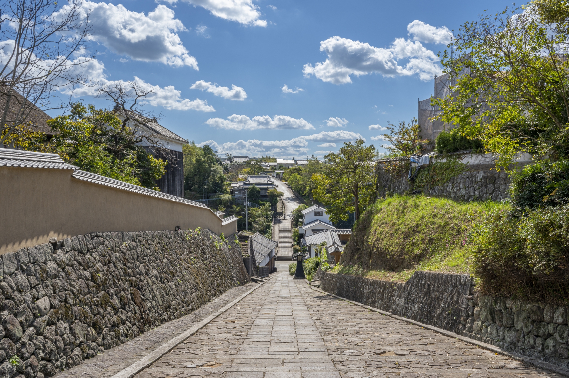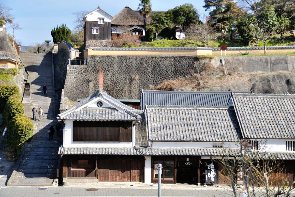 - 杵築市にある、坂道によって武家屋敷と商人の町が分けられた、全国的にも珍しい「サンドイッチ型城下町」。坂の上から見下ろす街並みは、歴史と風情を感じさせ、着物姿での散策にぴったりのフォトスポットです。特に、左右に武家屋敷、中央に商人の町が広がる光景は、杵築ならではの美しい景観です。石畳の道や白壁、古い建物が、ノスタルジックで情緒ある写真を演出してくれます。