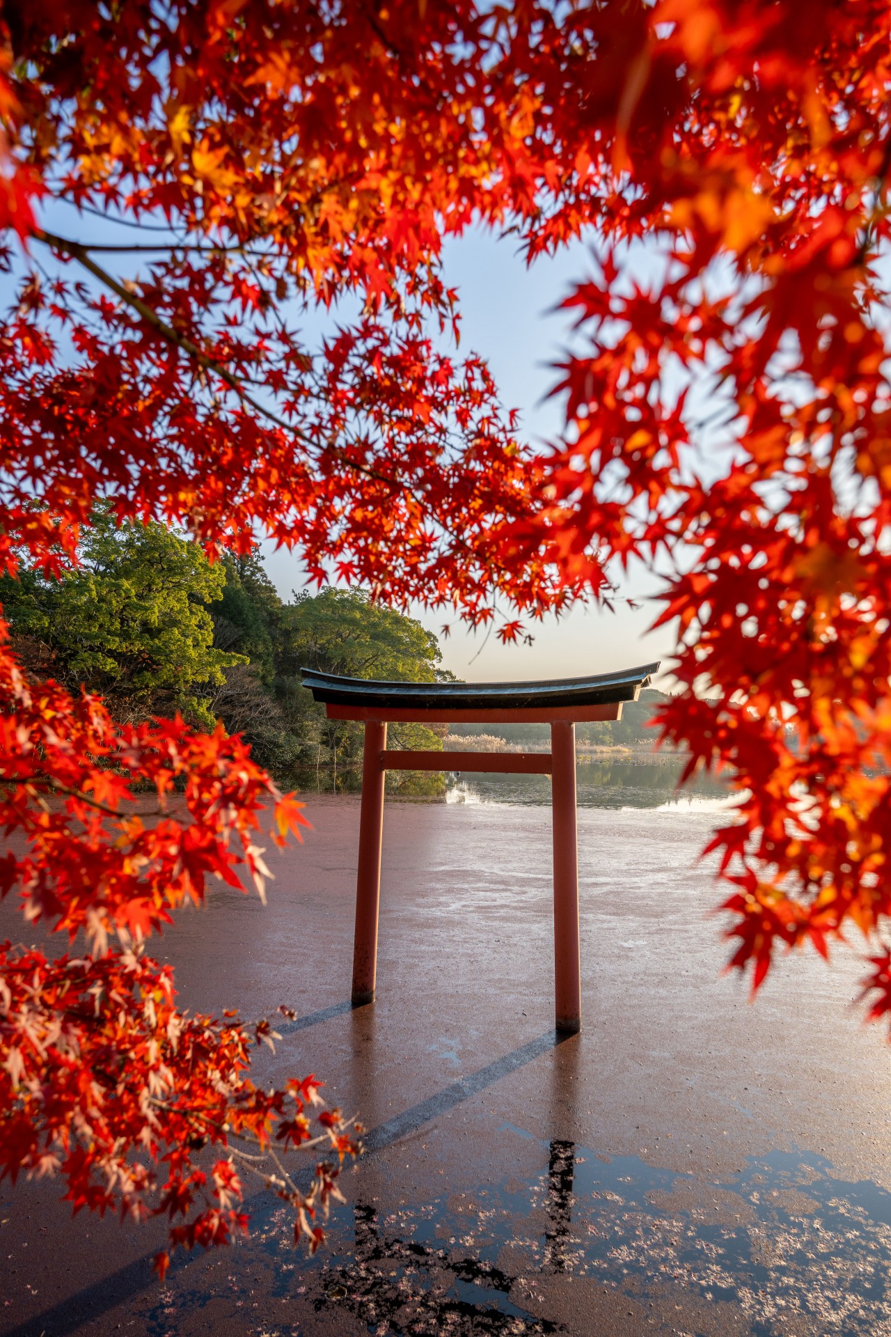 中津市にある、八幡神を祀る古社。境内の北側には、広大な三角池があり、その周囲をめぐる朱色の回廊が水面に映る光景は、神秘的で美しいです。特に、回廊と池、そして周囲の緑が織りなすコントラストは、写真映えする景観です。厳かで神聖な雰囲気とともに、日本の伝統美を感じさせる写真を撮ることができます。