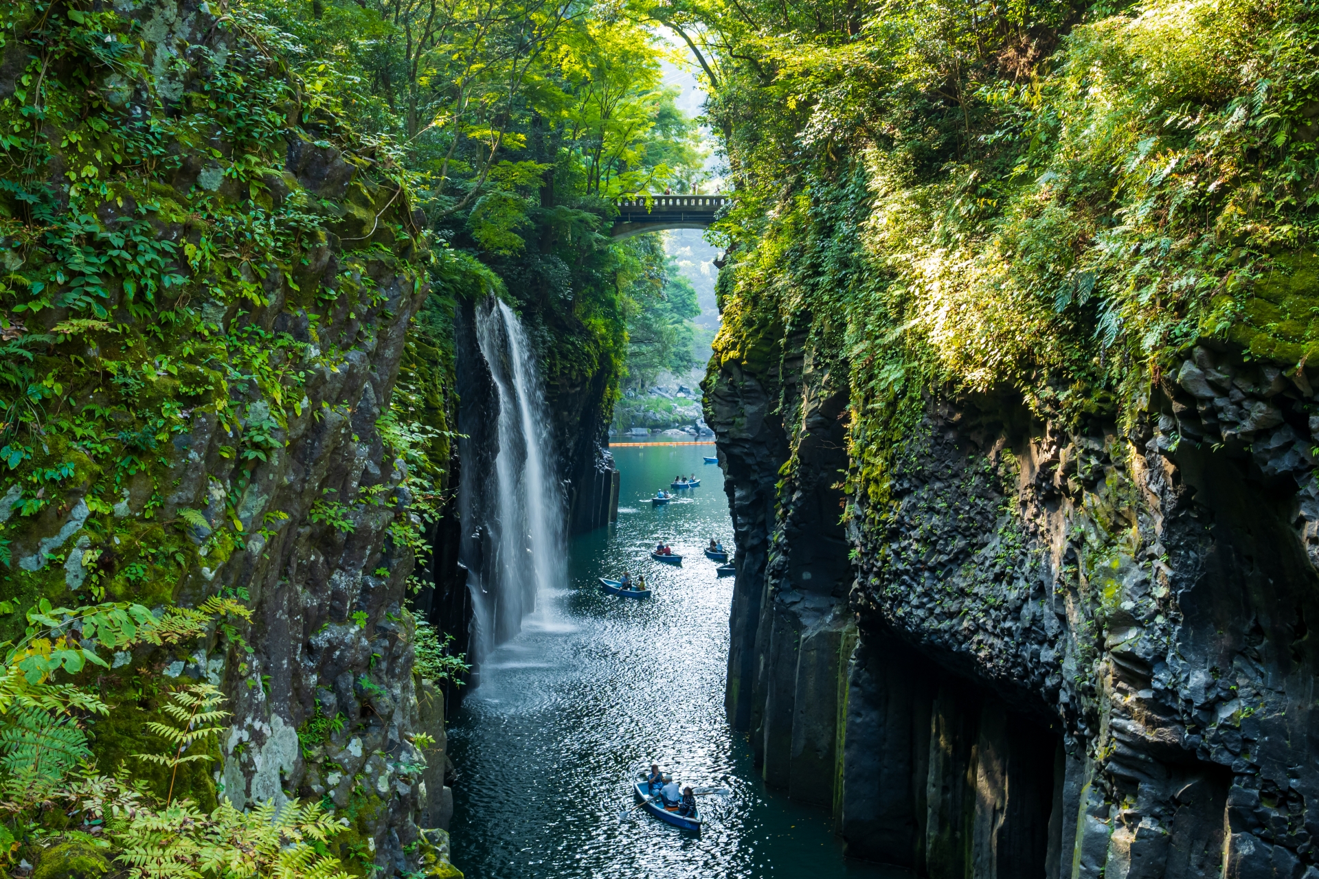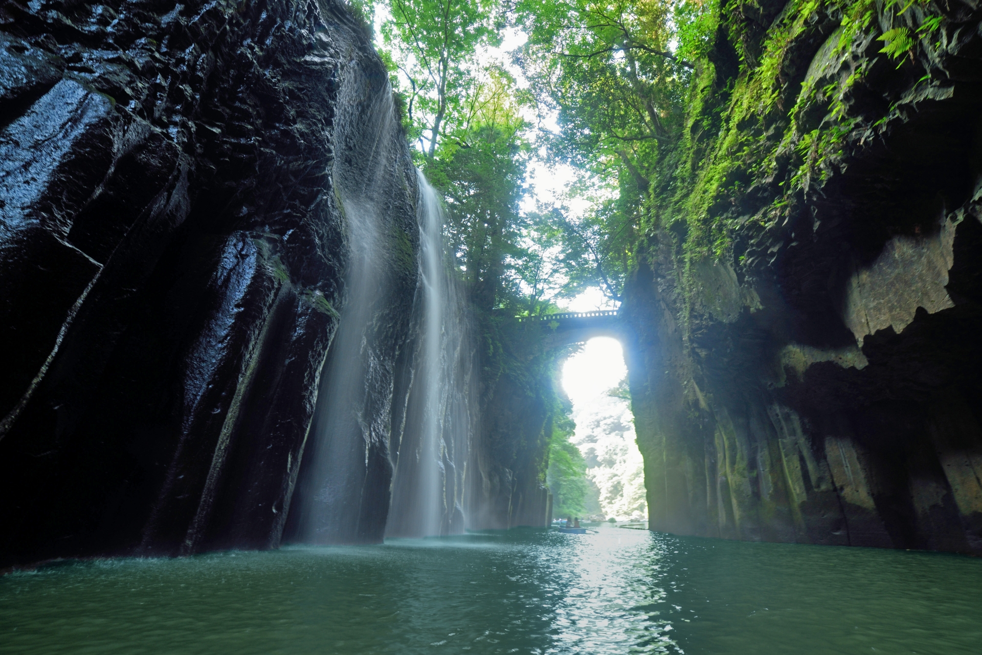 基本情報名称高千穂峡概要宮崎県にある、阿蘇山の火砕流が作り出した柱状節理の断崖が続く渓谷。エメラルドグリーンの水面と、そそり立つ岩肌のコントラストが圧巻の美しさです。特に、貸しボートに乗って、滝を間近に見上げるアングルは、幻想的で神秘的な写真が撮れます。日本の神話の舞台としても知られ、神聖な雰囲気が漂います。住所〒882-1103 宮崎県西臼杵郡高千穂町向山 高千穂峡電話–営業時間–アクセス–HPhttps://takachiho-kanko.info/
